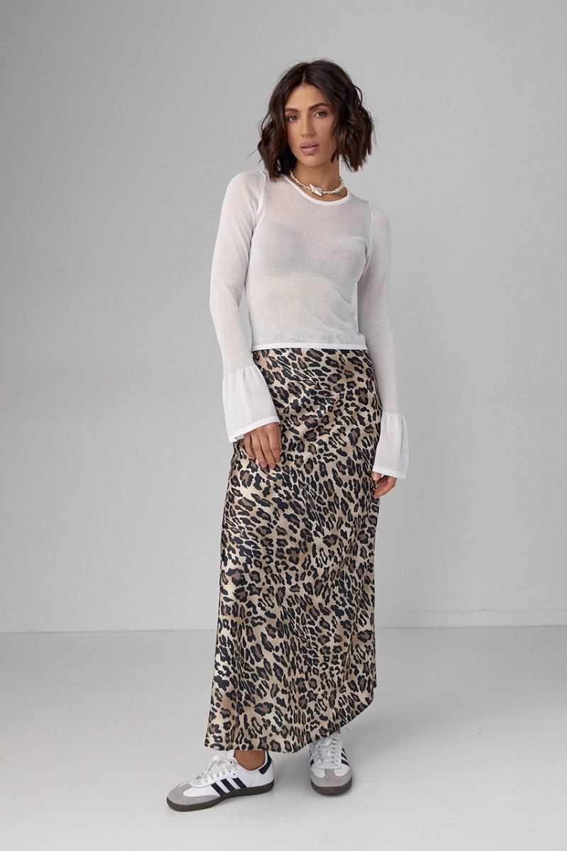 Женский полупрозрачный джемпер с длинными рукавами-воланами - это очаровательная и изысканная часть гардероба, которая добавляет образу нежности и женственности. Этот джемпер поражает своей элегантностью и утонченностью, создавая образ, который привлекает взгляды.
