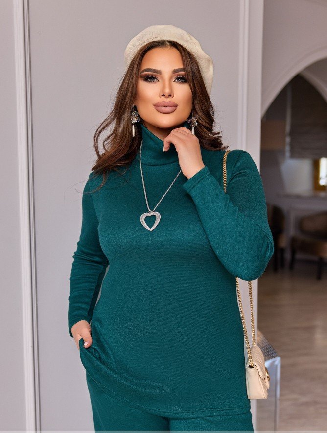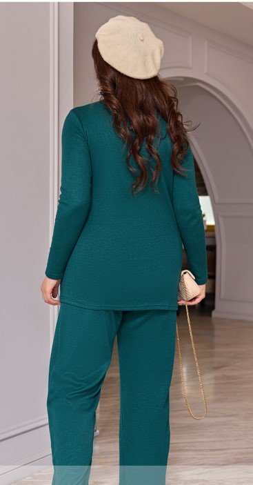 Прогулочный костюм из теплой ангоры создан для максимального комфорта и уюта в холодное время года. Удлиненная кофта-гольф с длинными рукавами предоставляет дополнительную теплоту и возможности создавать разнообразные образы. Ее структура ангоры обеспечивает мягкость и приятные ощущения на коже. Брюки по фигуре с боковыми карманами добавляют элемент практичности и стиля. Немного расширенный крой вниз создает модный и удобный силуэт. Украшение входит в комплект. Пояс не входит в комплект.