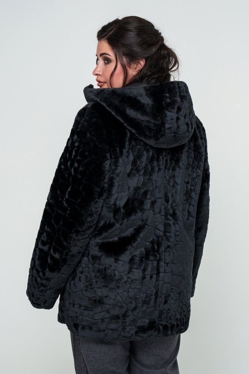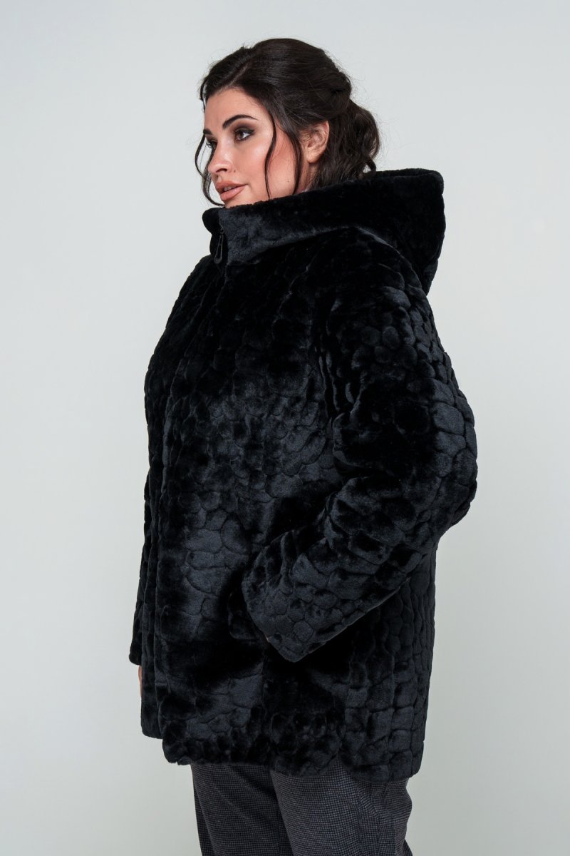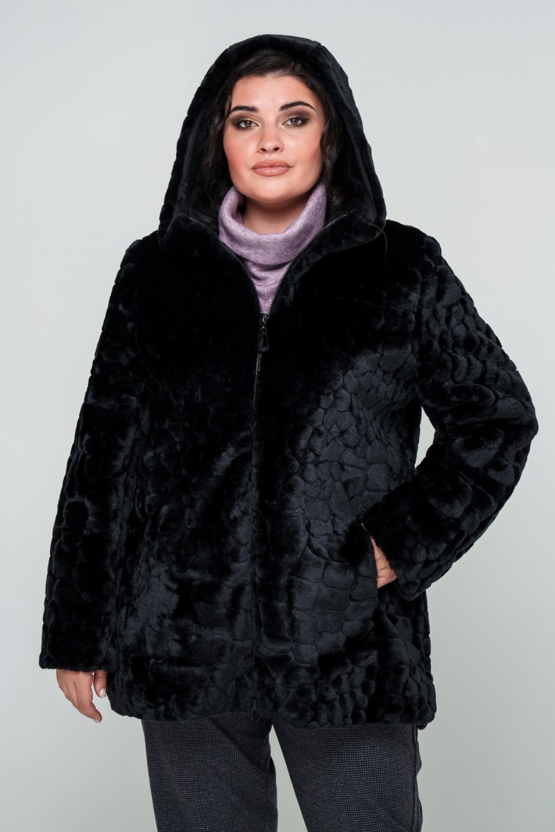 Шуба прямого силуэта, выполнена из искусственного меха. Модель выглядит сдержанно, стильно и имиджево. Рукав втачной, двухшовный. Застёжка на молнию, карман прорезной. Капюшон не съемный. Подкладка из нейлона.