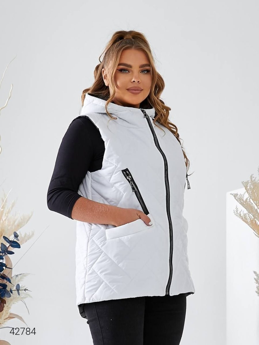 Стеганая жилетка женская. Стильная стеганая жилетка с карманами, удобным глубоким капюшоном и качественной фурнитурой.
