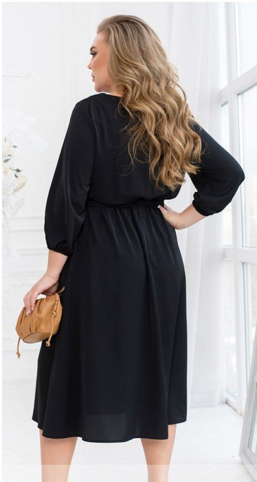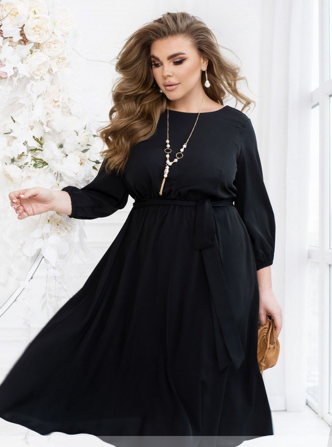 Это однотонное платье меди с круглой горловиной привлекает внимание своей простотой и элегантностью. Рукава 7/8 с резинкой придают удобство и придают оригинальность образу. Отрезная талия с резинкой, которую можно подчеркнуть входящим пояском, делает образ акцентированным и стильным. Это платье станет отличным выбором для разных мероприятий, где важно сочетать элегантность и комфорт.
