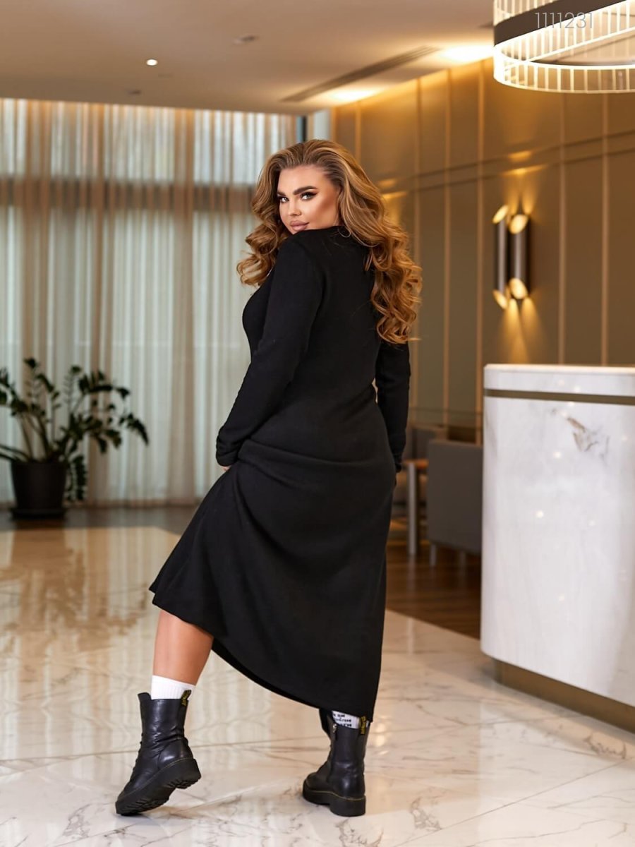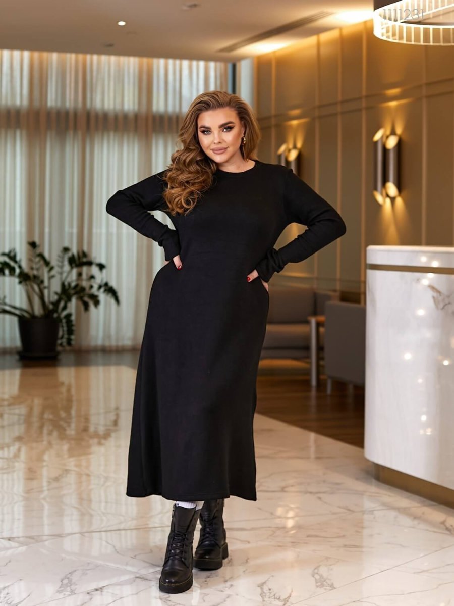 Подробности: платье А-силуэта с округлой горловиной, длинными рукавами расширенными книзу.