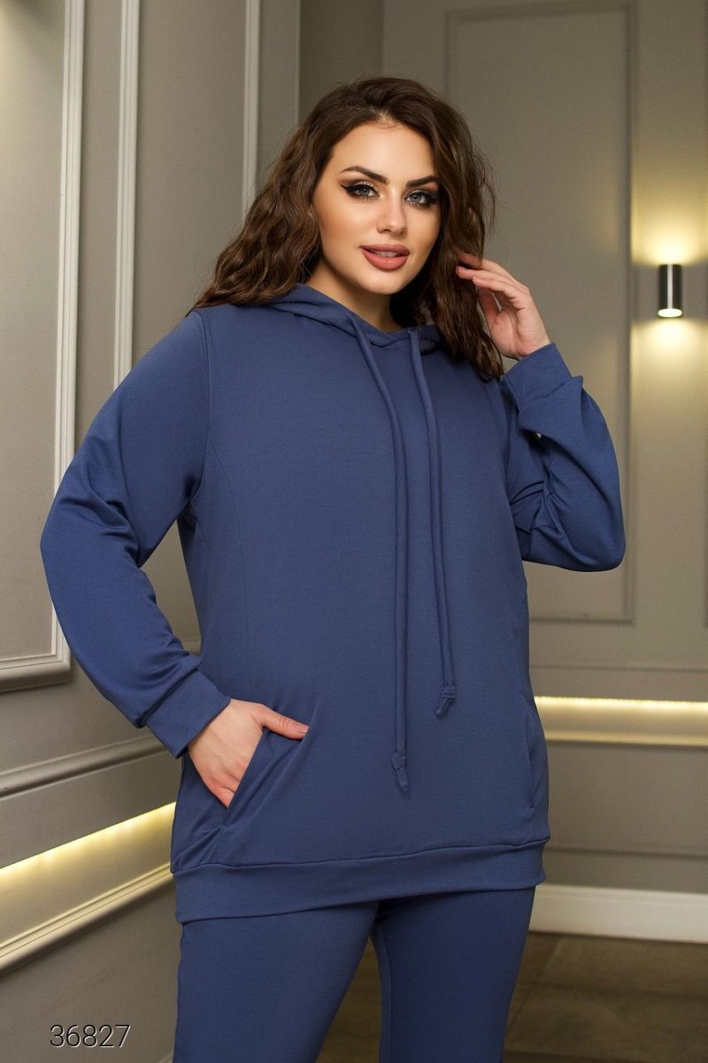 Костюм из качественного трикотажа двухнити. Худи с объёмным капюшоном с затягивающимся шнурком, боковые прорезные карманы, эластичные манжеты. Джоггеры с поясом и манжетами на резинке, боковые прорезные карманы.