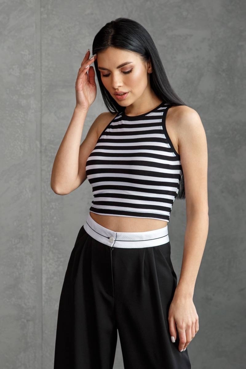 Укороченная облегающая майка силуэта - идеальный выбор для создания современного и стильного образа. Выполнена из мягкого трикотажа, который приятен на ощупь и обеспечивает комфортную посадку. Эта майка отлично подходит для совмещения с джинсами или юбкой и станет незаменимой вещью в гардеробе каждой модницы. Измерения в нерастянутом состоянии