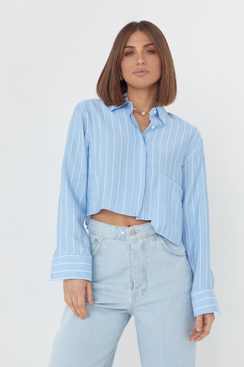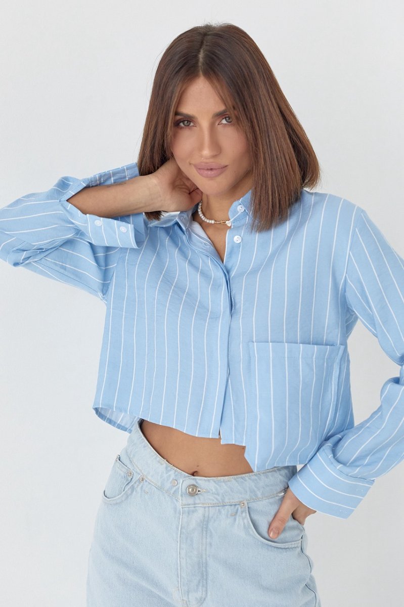 Если ты любишь штаны и юбки с высокой линией талии, тогда тебе точно пригодится укороченная женская рубашка в полоску.