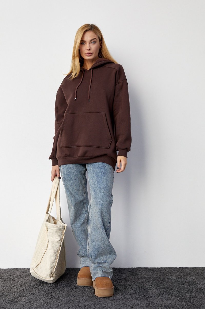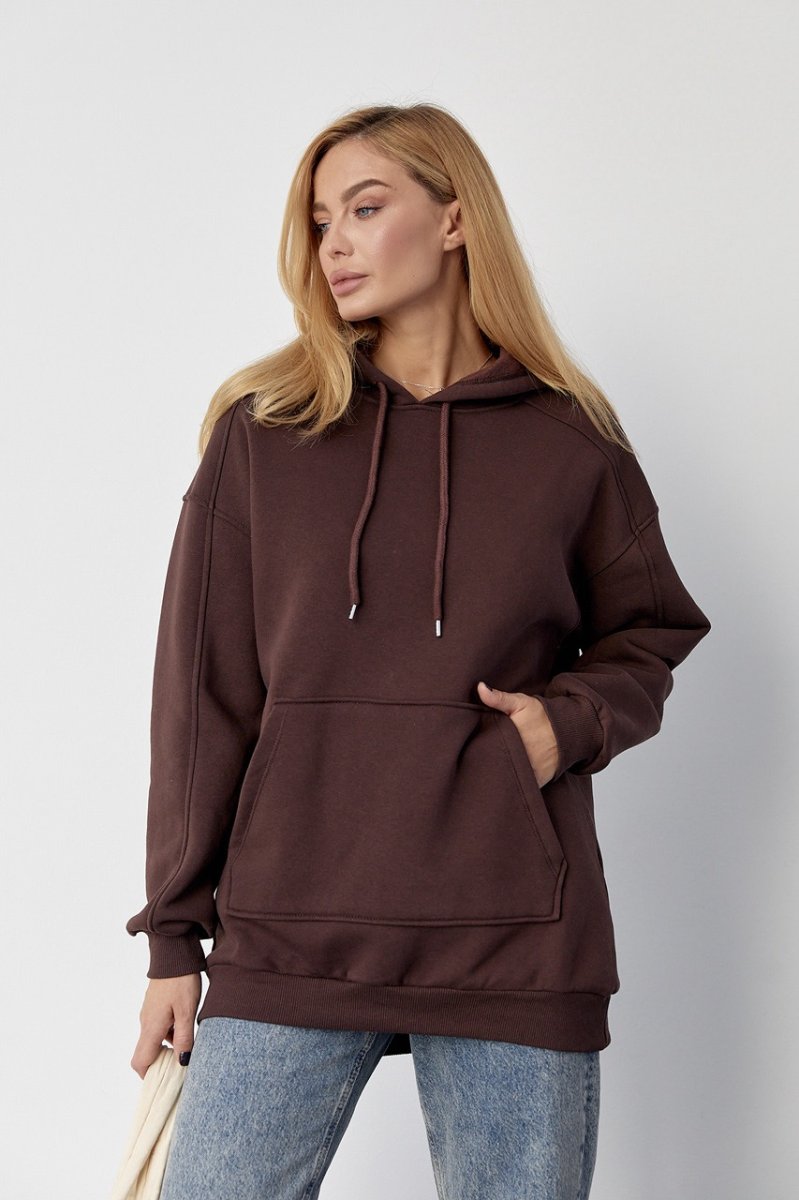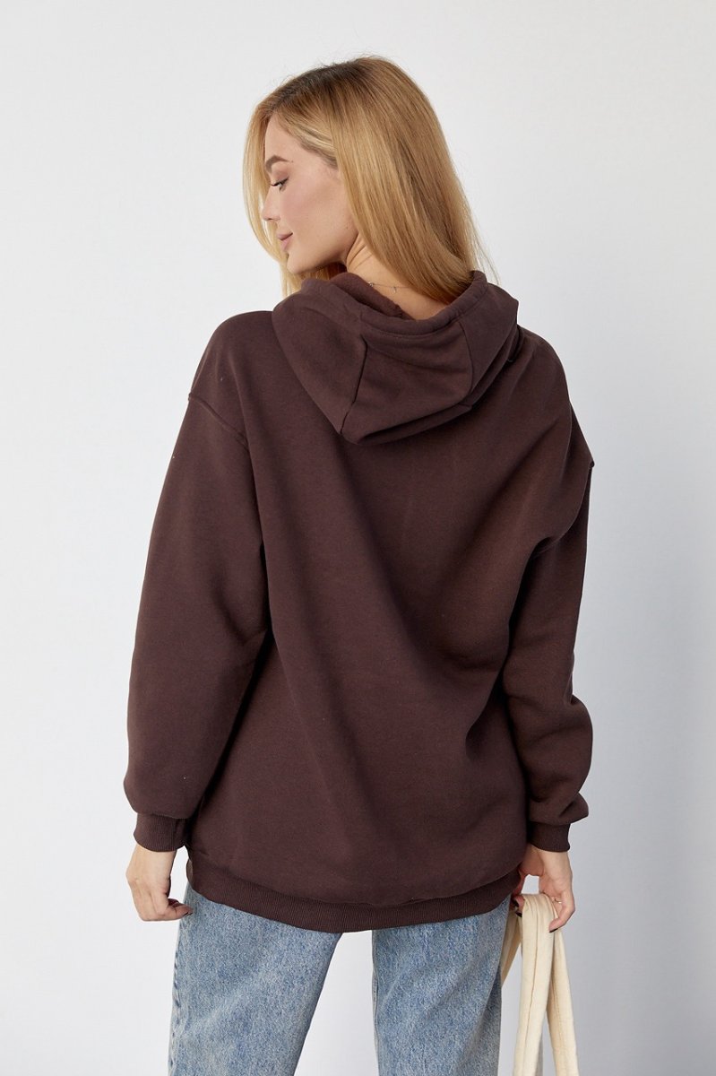 Утепленное женское худи с карманом-кенгуру 8606 коричневый