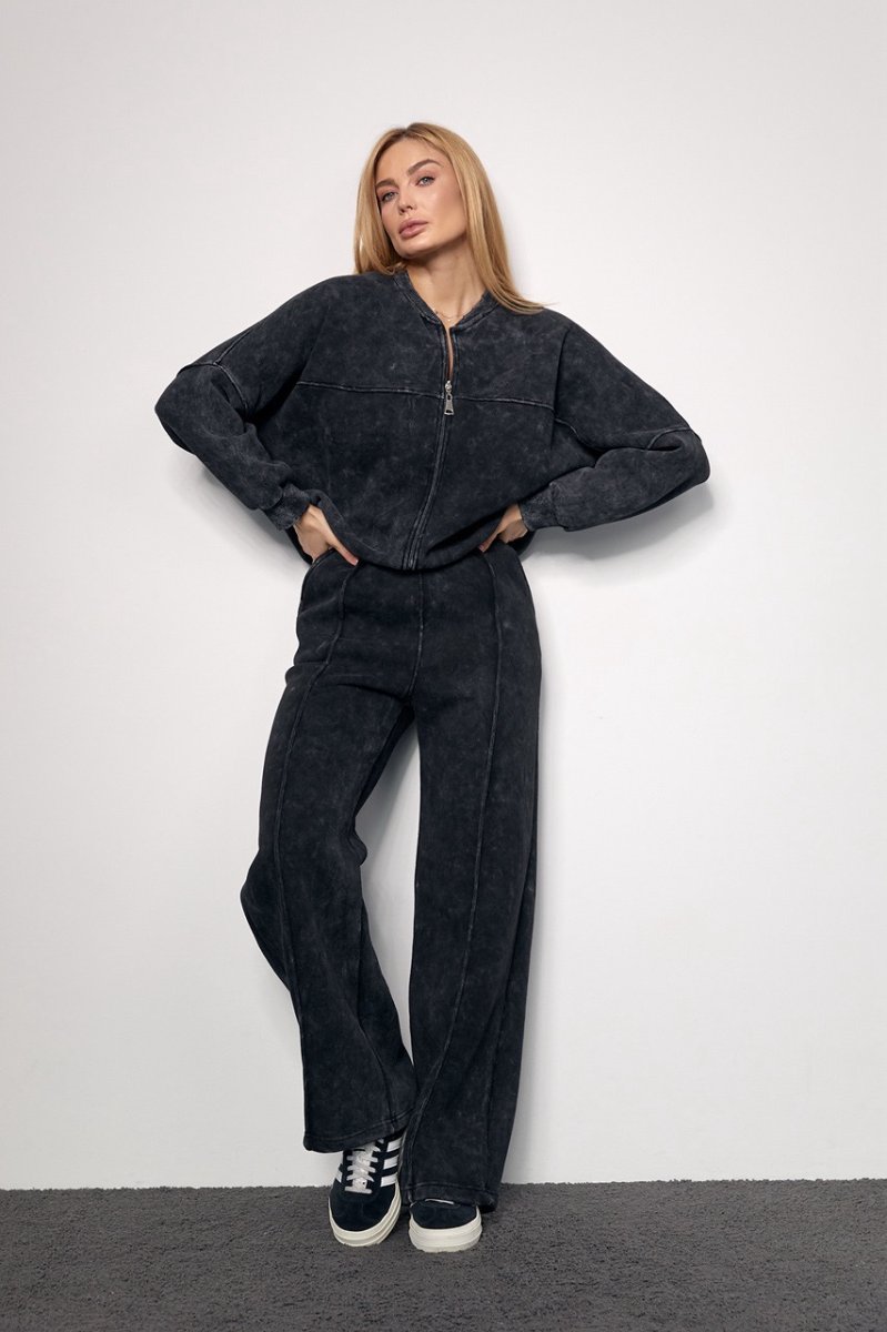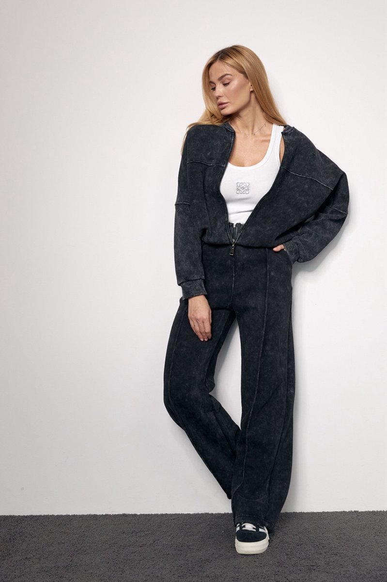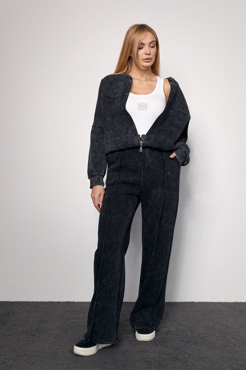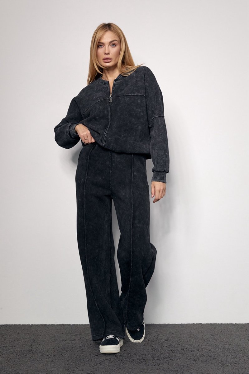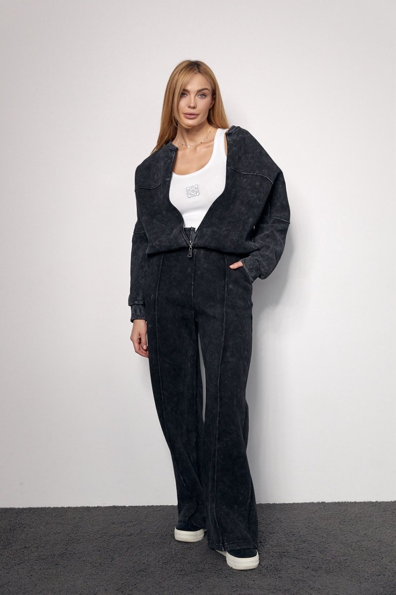 Трикотажный женский костюм с начесом в технике тай-дай не только стильно выглядит, подчеркивая красоту женской фигуры, но и порадует девушек своим комфортом.