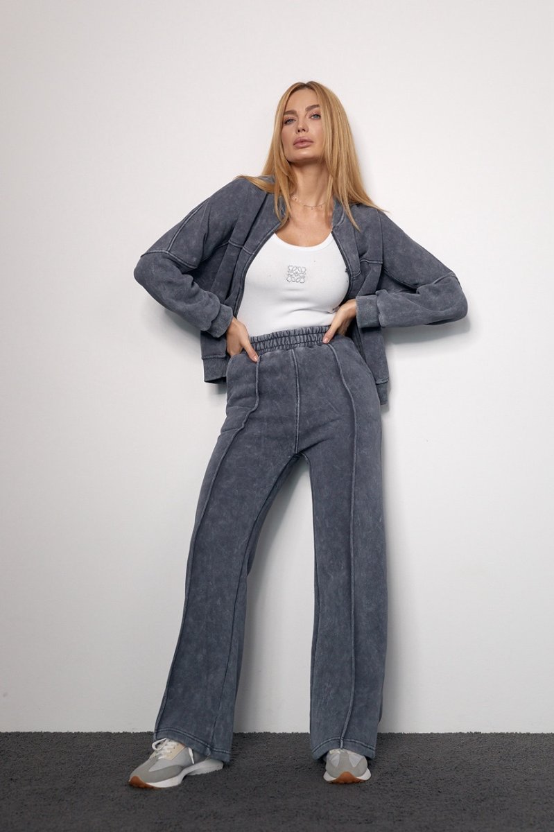 Трикотажный женский костюм с начесом в технике тай-дай не только стильно выглядит, подчеркивая красоту женской фигуры, но и порадует девушек своим комфортом.