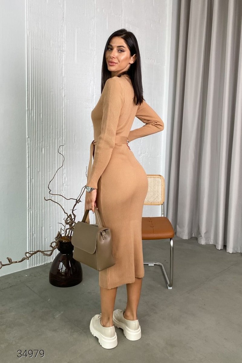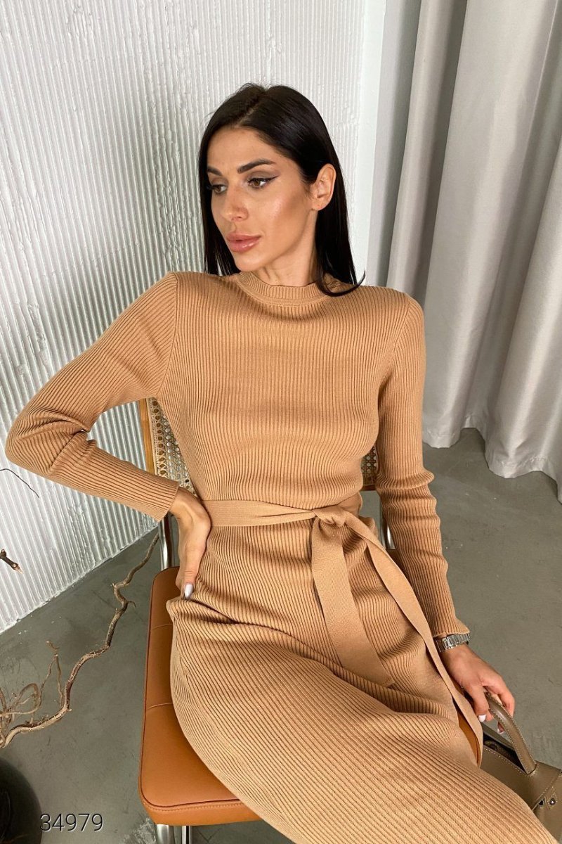 Платье длины миди из качественной вязки, производства Турции. Ворот-стойка, шлёвки, высокий боковой разрез. В комплекте пояс. Размер универсальный, подходит на 42-46. Состав ткани: 80% – акрил, 20% – полиэстер.