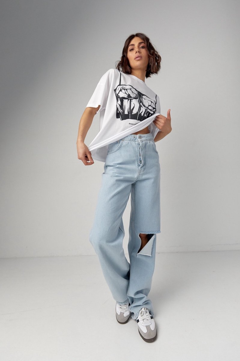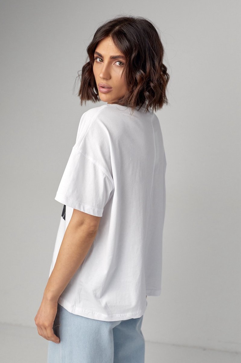 Эта женская трикотажная футболка имеет свободный крой, который обеспечивает свободу движений и комфорт при носке. Она идеально подходит для повседневного использования, придавая вашему образу легкость и непринужденность.