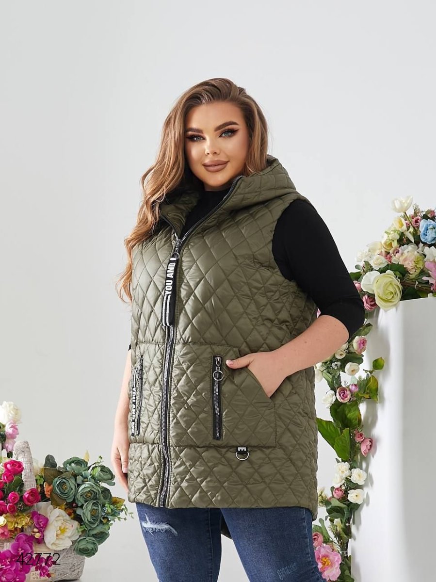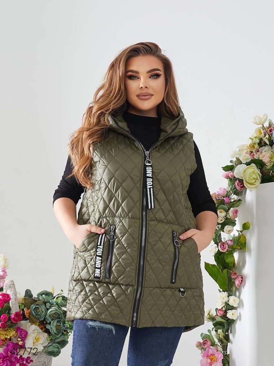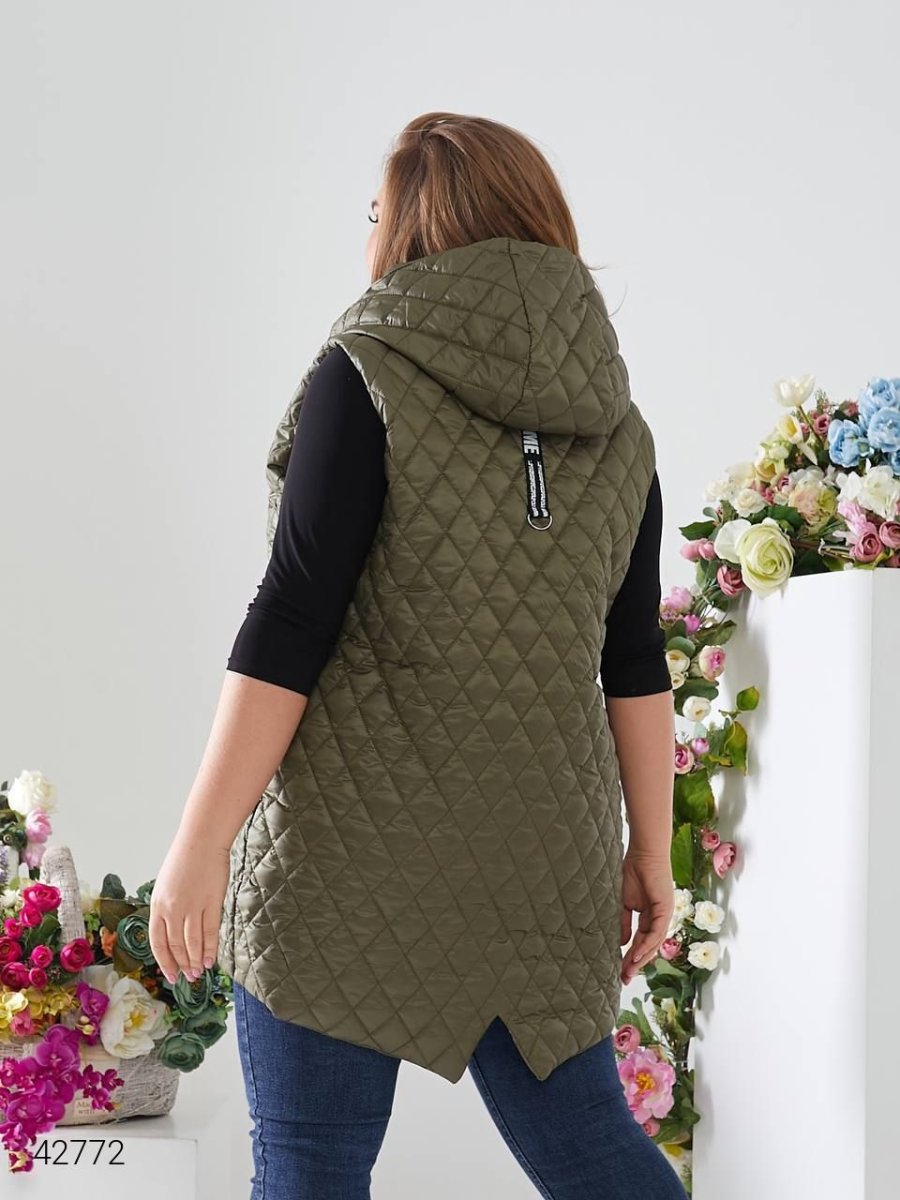 Женская стеганная жилетка. Стильная стеганная жилетка с накладными карманами, удобным глубоким капюшоном и качественной фурнитурой.