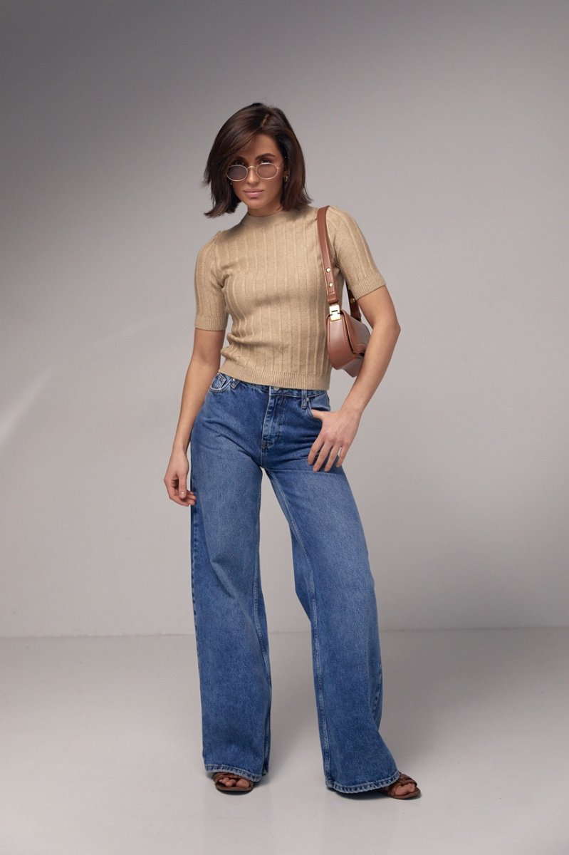 Эта стильная женская футболка станет основой для ваших повседневных и деловых образов, хорошо сочетаясь и с классическими черными брюками или цветными юбками, и с молодежными джинсами всевозможных расцветок. При этом она добавит наряду трендовых акцентов благодаря актуальной вязаной текстуре.