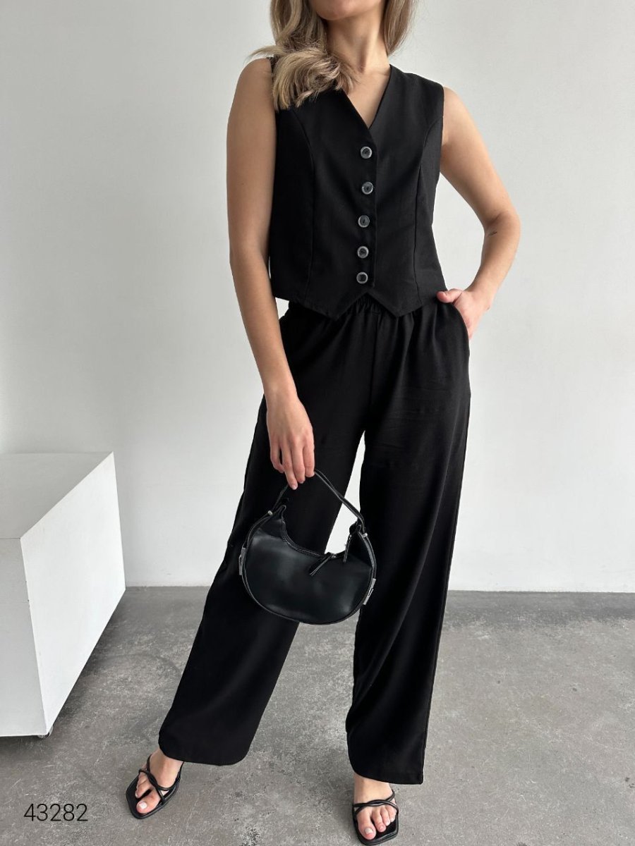 Женский брючный костюм с жилеткой. Тренд сезона. В нём вы создадите стильный и сексуальный образ. А натуральная ткань позволит Вам чувствовать себя комфортно.
