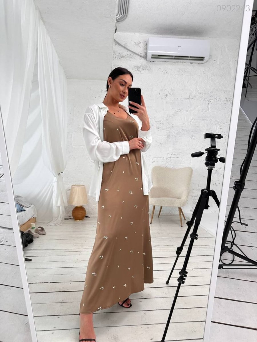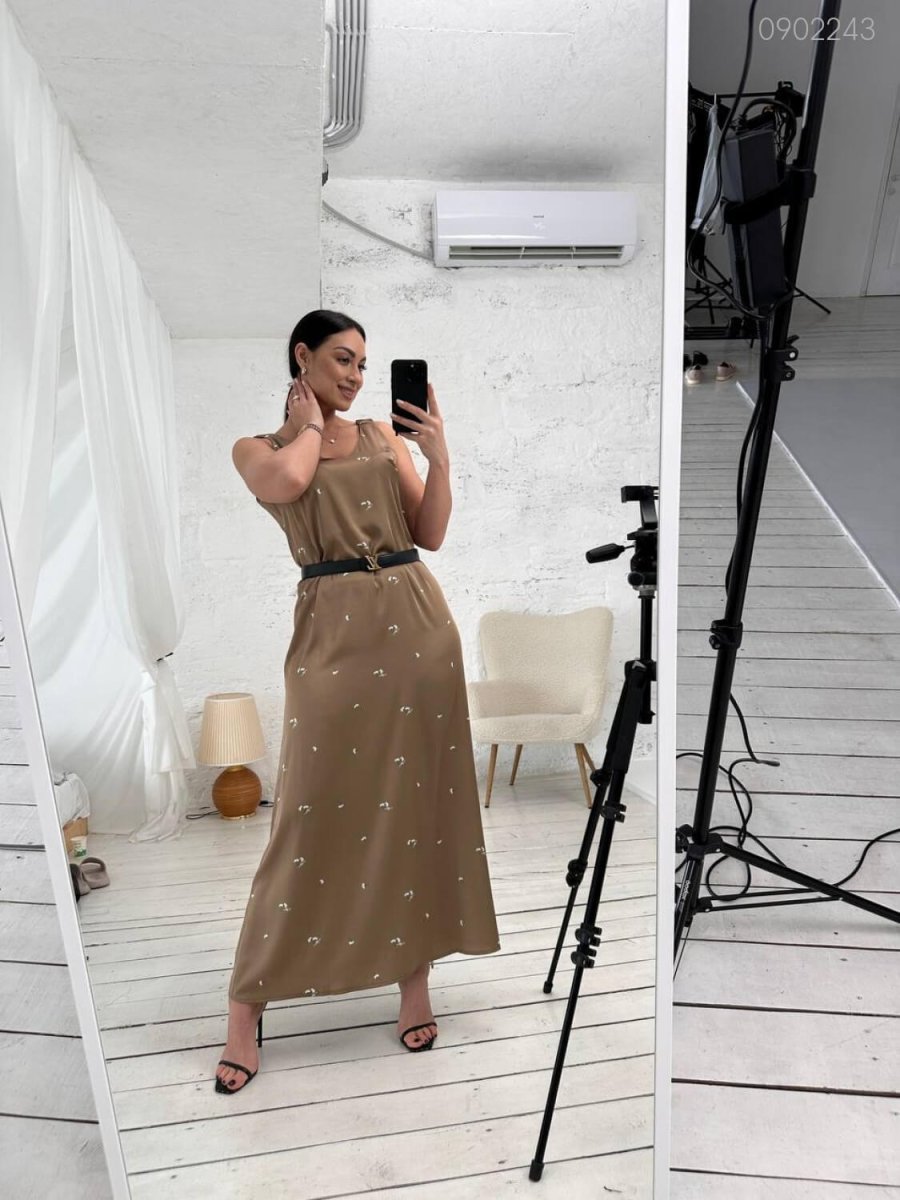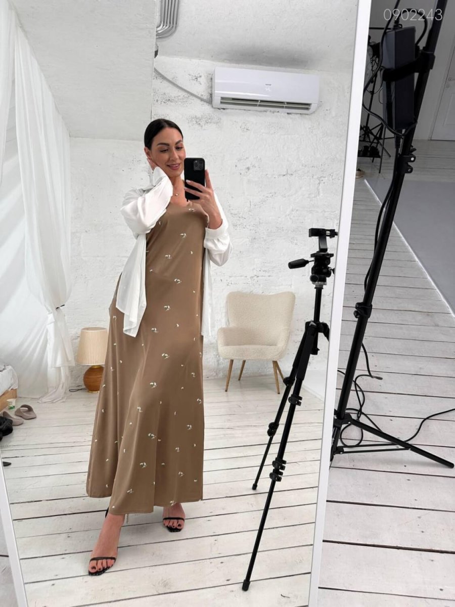 Деталі: Сукня А-силуету довжиною максі. V-подібне декольте, широкі бретелі.