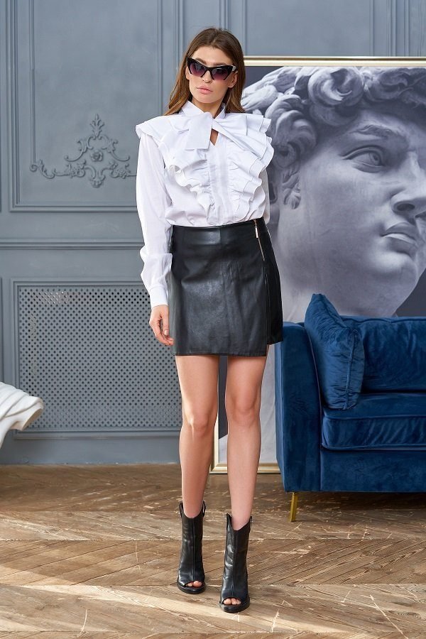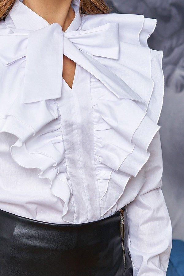 Жіночий гардероб без стильних моделей сорочок ніяк не обійдеться, незалежно від Вашого стилю одягу і переваг. Модна сорочка дозволить доповнити будь-який Ваш look. Сорочка "Арді" стане не лише найкращим доповненням до ділового образу, але і прекрасним сетом з спідницями, шортами або джинсами. У такому тандемі Ви зможете створити чарівний і ефектний аутфит. Виріб вільного крою з довгим втачним рукавом на манжеті. Стильна подвійна оборка по поличці правильно і ефектно розставляє потрібні акценті. Завершальною нотою є зав'язка у вигляді банта на горловині, яка підкреслює шарм образу в цілому.