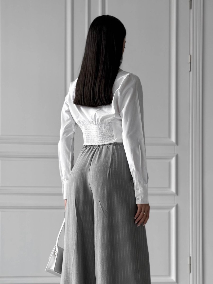 Біла базова сорочка корсетного типу. Передня частина з вставкою типу корсет, по спинці резинка.