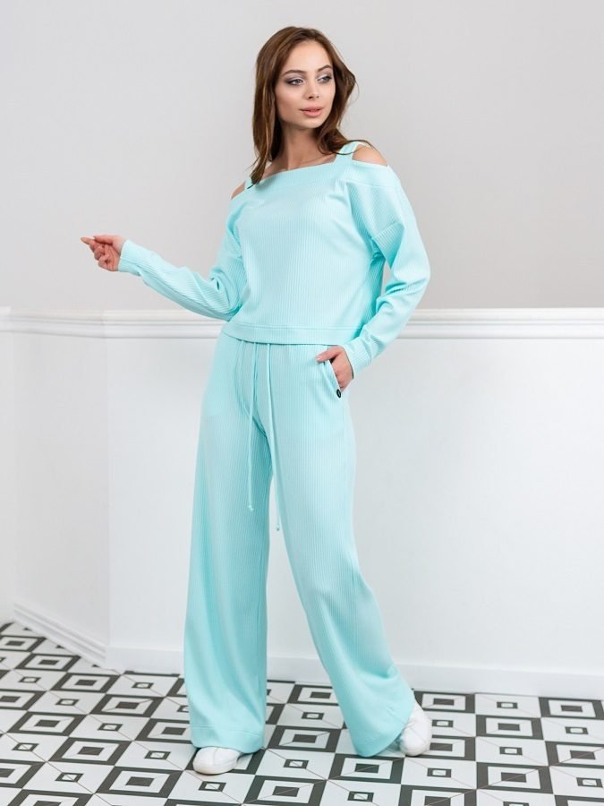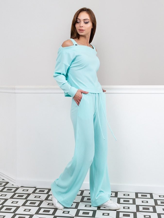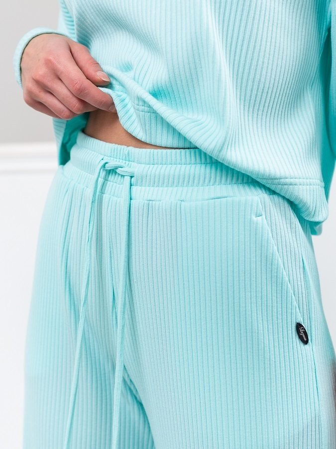 Неймовірно зручні штани-палаццо з дихаючого трикотажу. Висока посадка, еластичний перебудований пояс, регульований зав'язками. Косі кишені з боків. Штани доповнені декоративним елементом з найменуванням бренду.