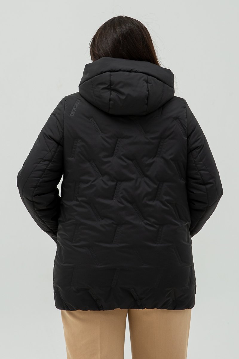 Куртка виконана з плащової пайки, наповнювач- силікон (100), підкладка- нейлон. Капюшон втачний. Рукав втачний, двошовний.