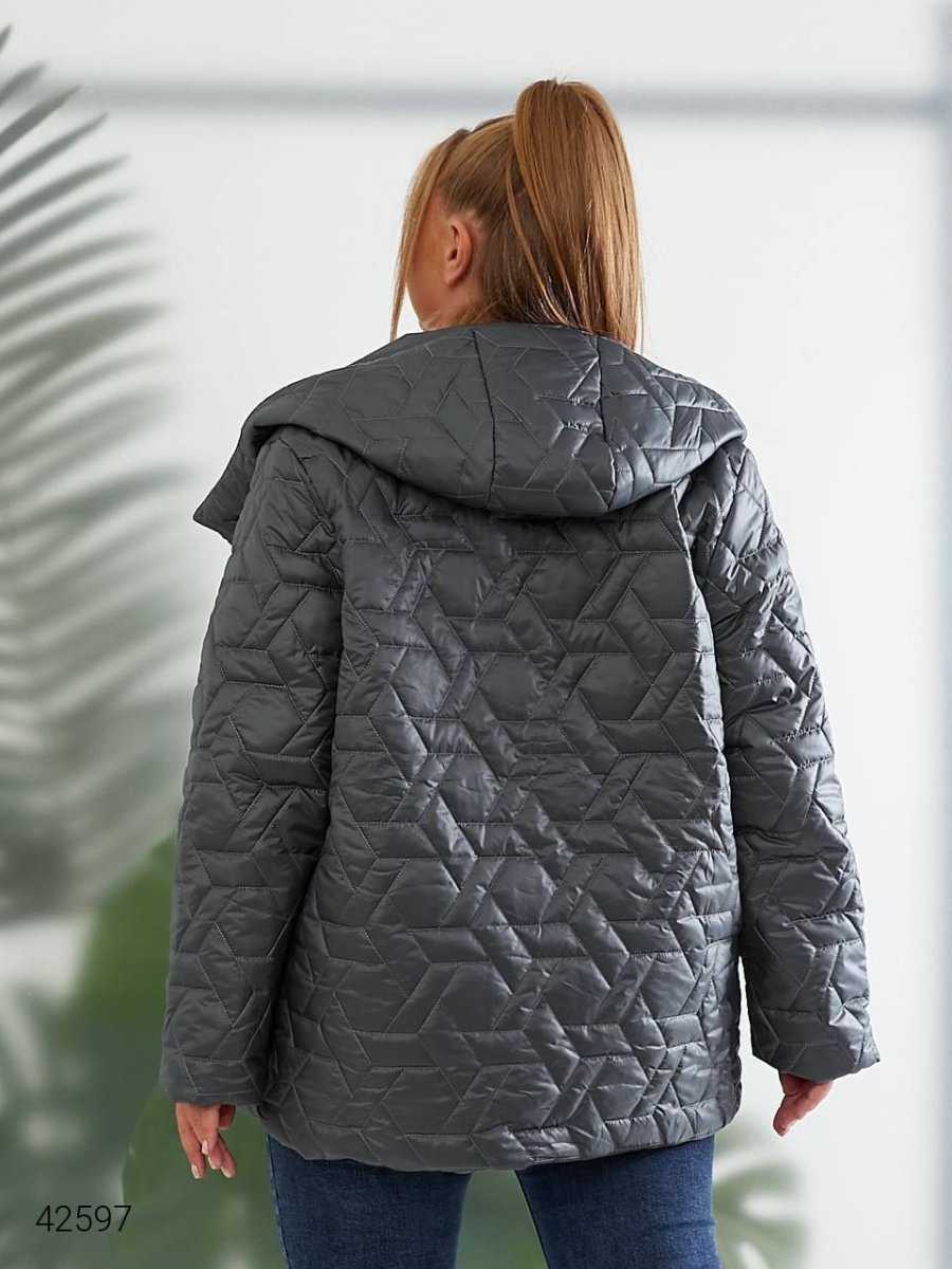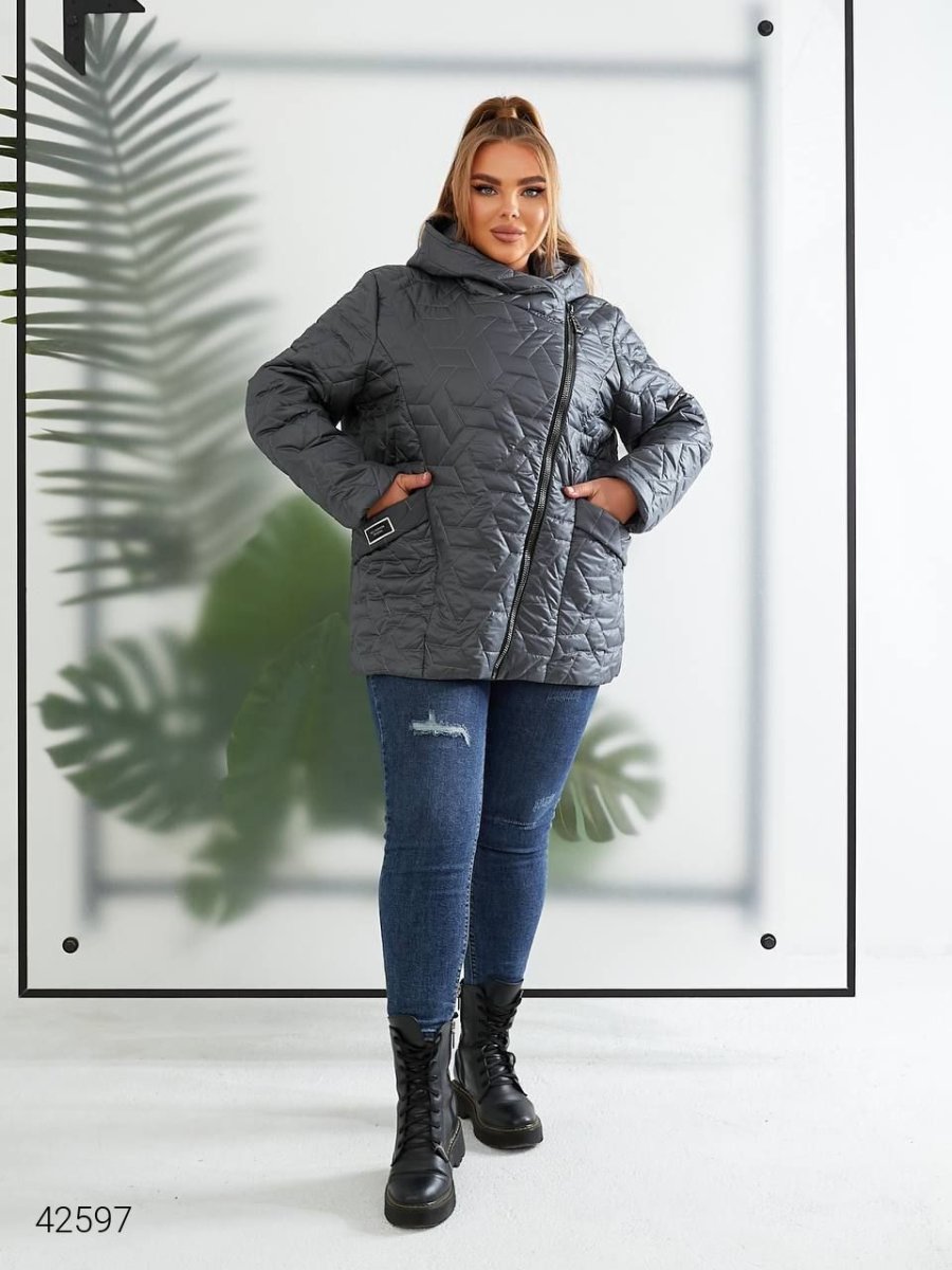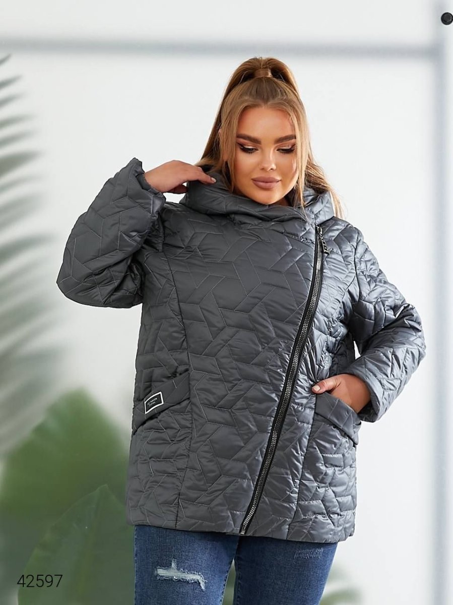 Жіноча демісезонна куртка плюс сайз 42597 сіра