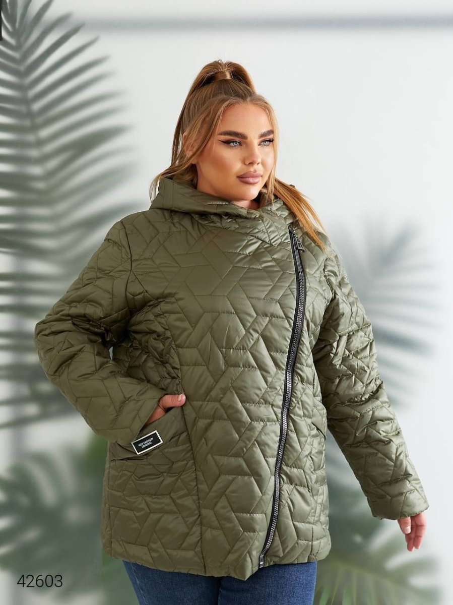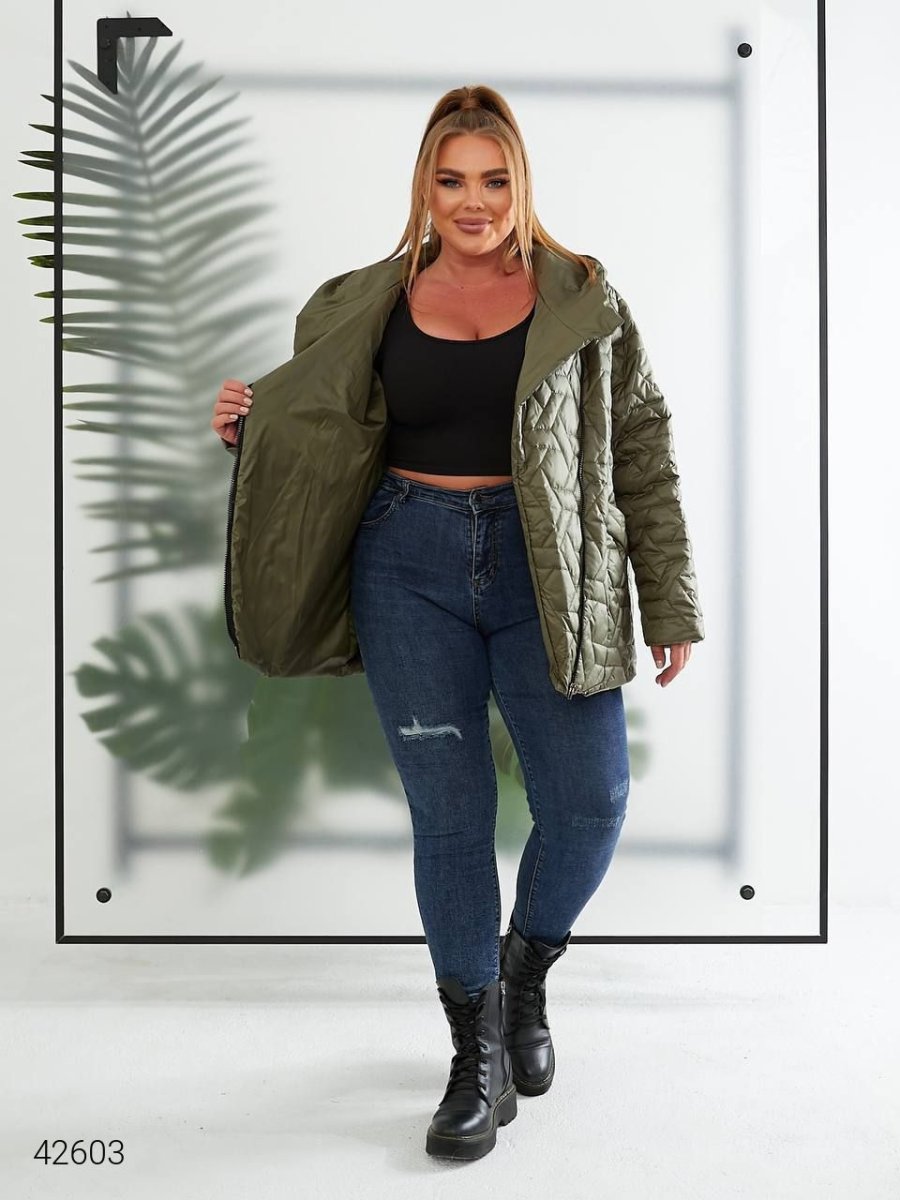 Жіноча демісезонна куртка плюс сайз 42603 хакі