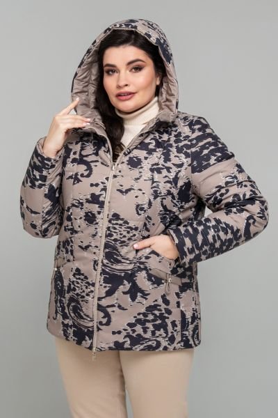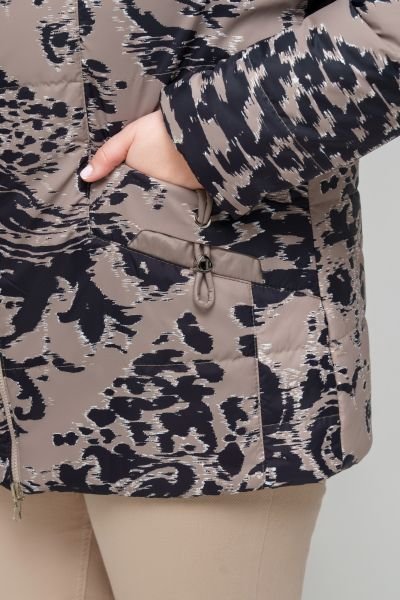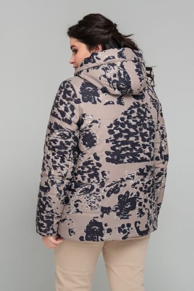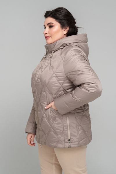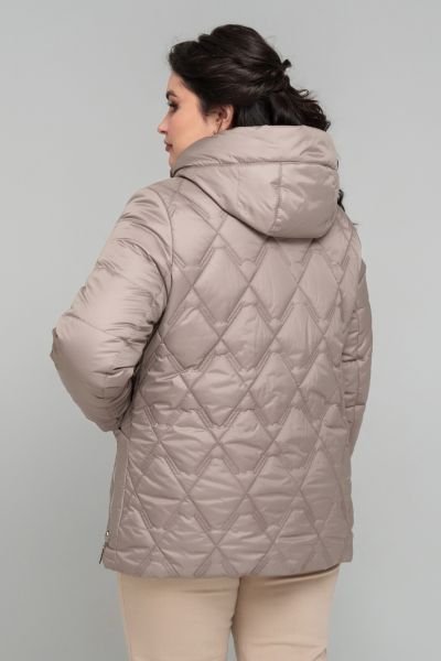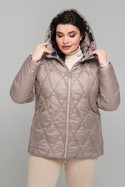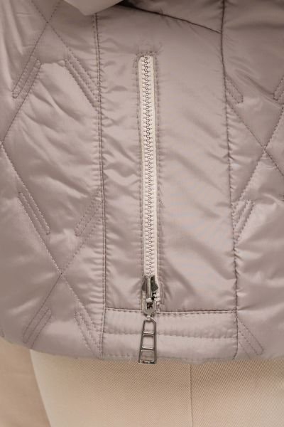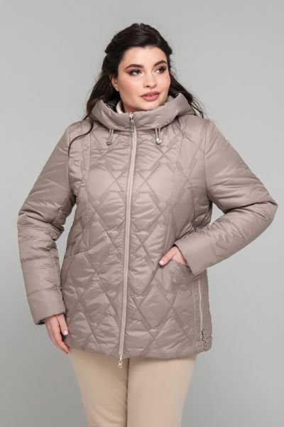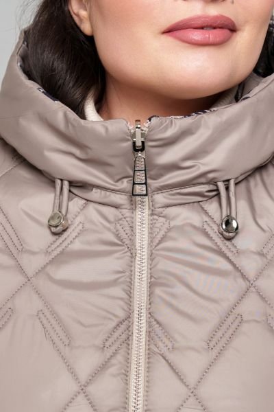 Куртка двостороння, прямого силуету, виготовлена з плащової тканини двох відтінків. Наповнювач тинсулейт 160 (г/м2). Рукав втачний, двошовний. Капюшон втачний (незнімний), висота регулюється за допомогою шнурка із затискачами. У рельєфних швах полиці виконані кишені, декоровані блискавками. На внутрішній стороні кишені декоровані шнурком із затискачами. Застібка на двосторонню блискавку.