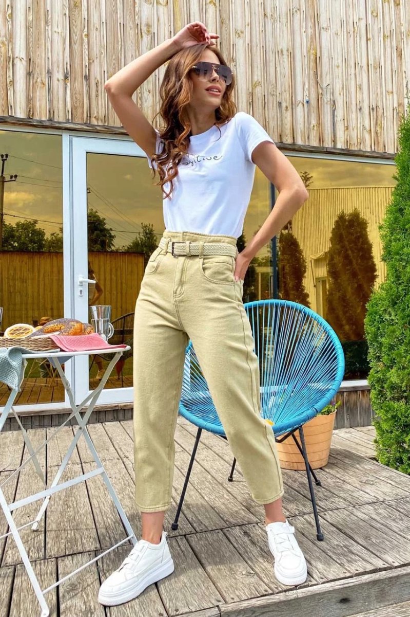 Зроби своє літо яскравішим з нашими джинсами! Ніжні кольори та стильний дизайн. Джинси йдуть із завищеною талією, вільні. Для повного завершення свого образу ти можеш вибрати футболку із накаткою в тон джинс.