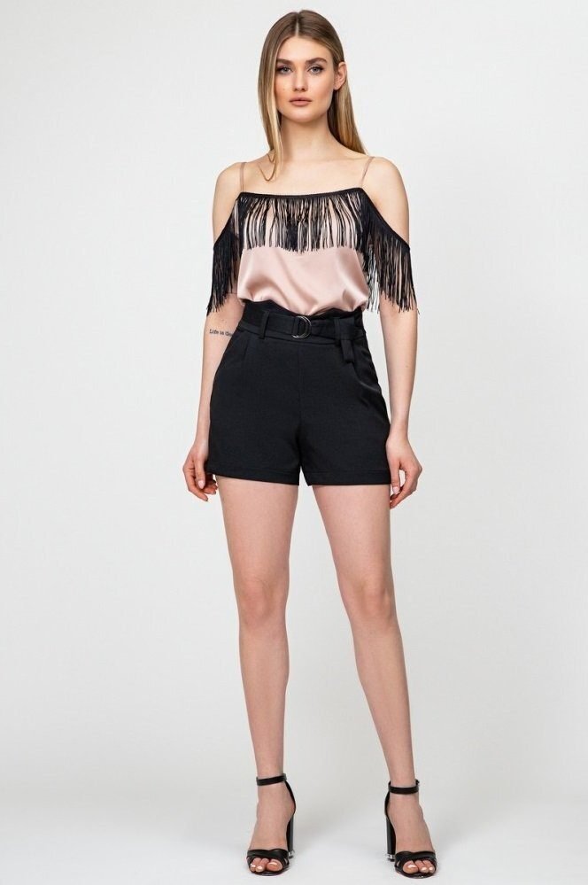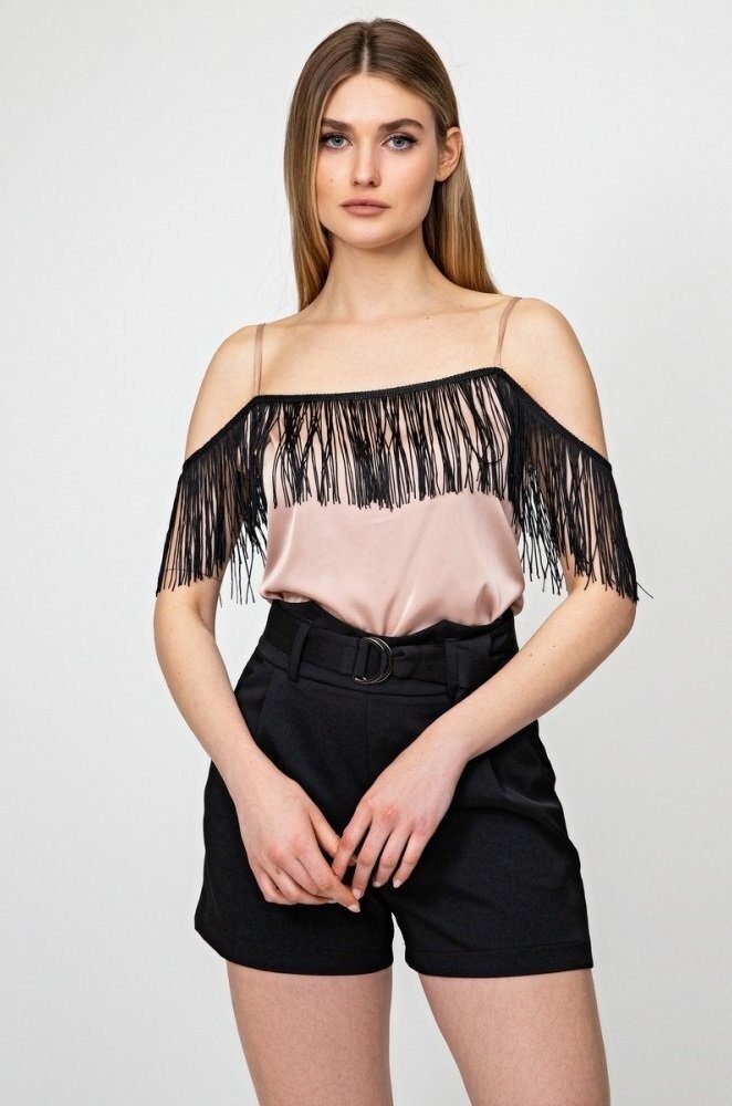 Ефектна шовкова майка з бахромою. Бретелі що регулюються.