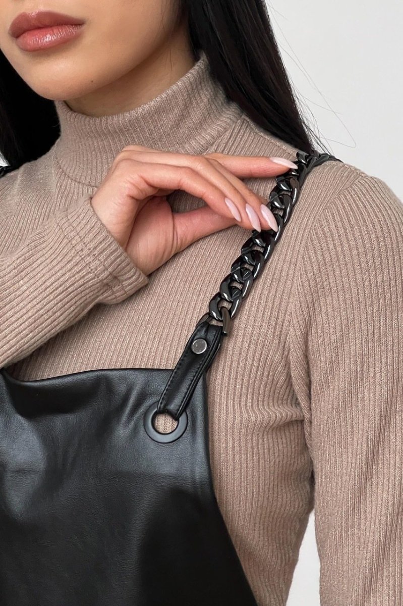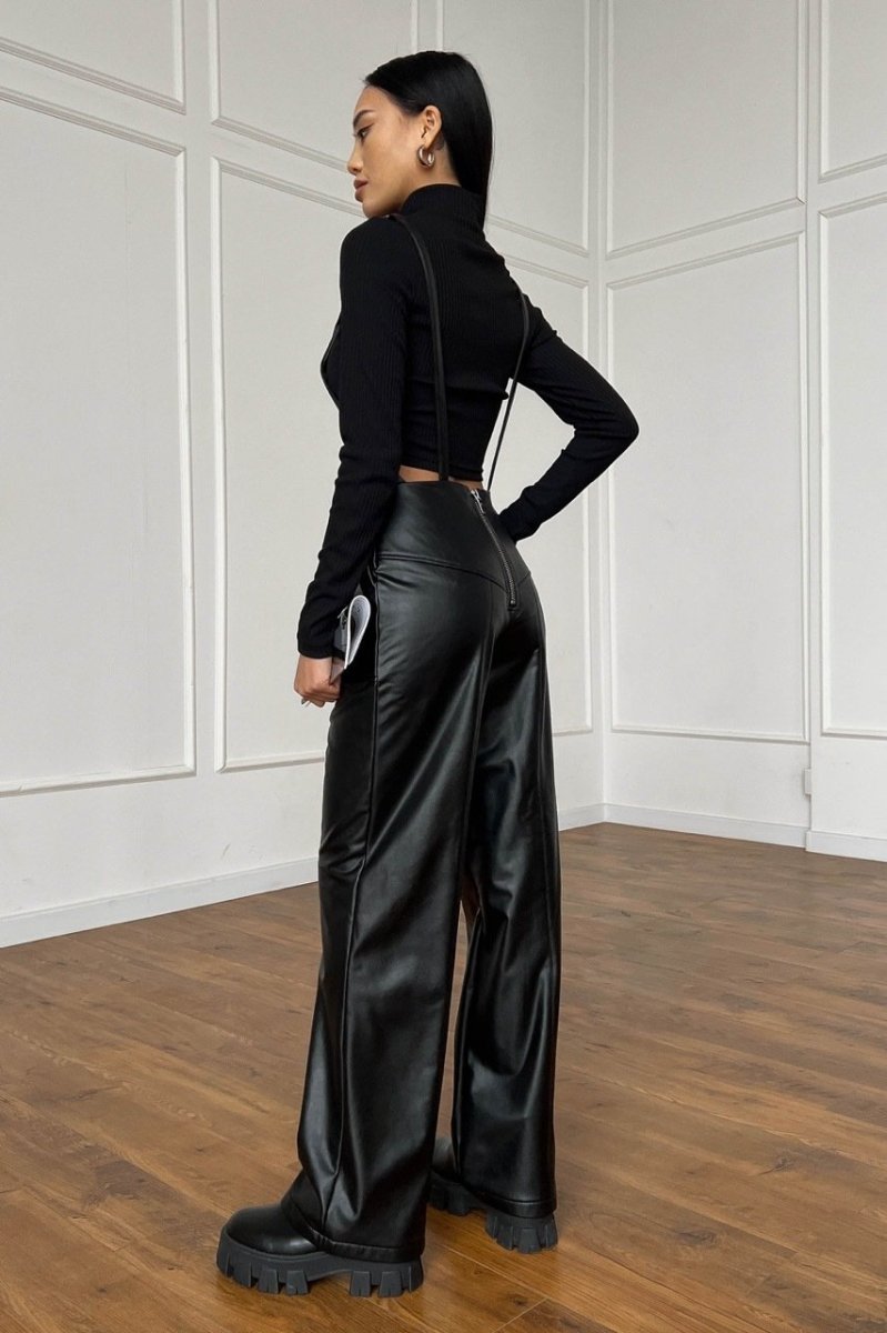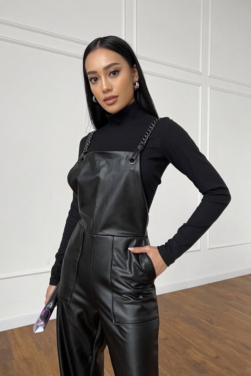 Комбез з еко шкіри із впевненістю можна назвати одним із найекстравагантніших предметів жіночого гардеробу. Такі вироби роблять акцент на стегнах та підкреслюють стрункість ніг і подовжують силует. Завдяки цьому кожна дівчина зможе виглядати стильно та дорого. Найуніверсальнішим рішенням стає саме чорний шкіряний комбінезон - він завжди виглядає надзвичайно стильно і актуально, чудово поєднуючись з іншими виробами зі шкіри - сумкою або взуттям.
