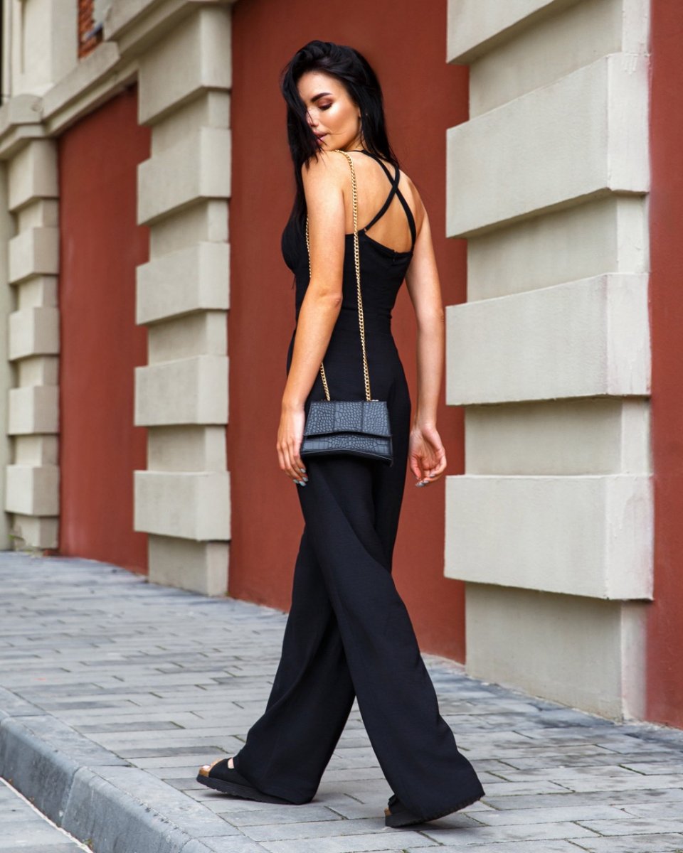 Комбінезон із крешевого льону чорний 4611