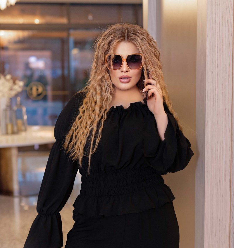 Неймовірний костюм, який підкорив наше серденько та впевнені, що зачарує й Вас. Складається він з блузи із довгим рукавом та базових брюк широкого крою. Розкішна блуза з горловиною, яка виготовлена в формі човника з гумкою, яка створює невеликі волани, що додають виробу легкості та жіночності.