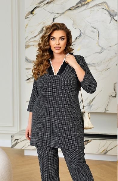 Костюм з олія трикотаж у дрібний горошок з гофрованим рюшем