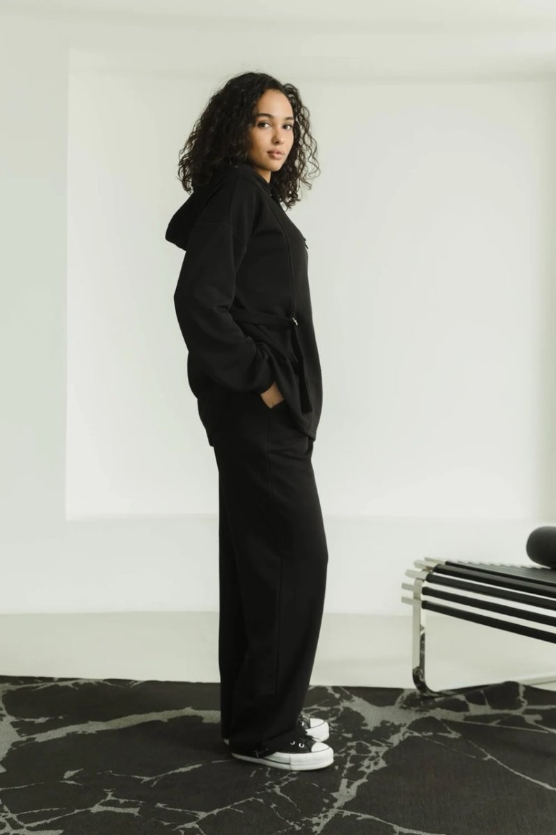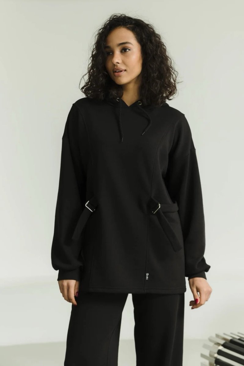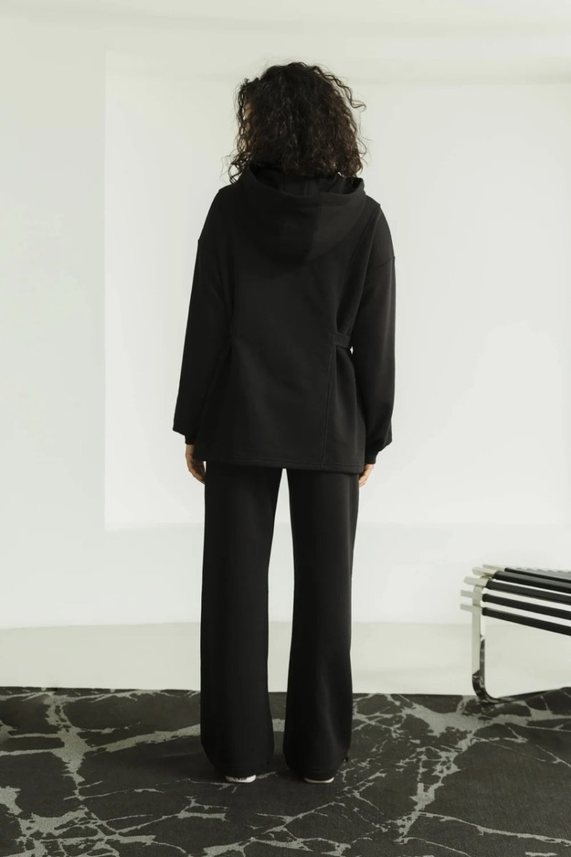Конструктивні елементи: розрізна полиця, штани на резинці, капюшон