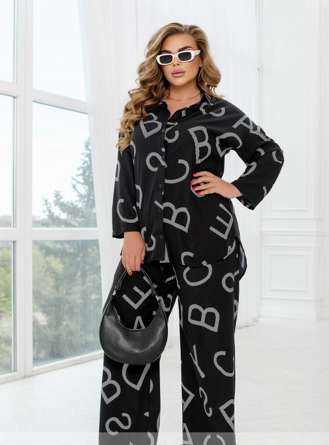 Цей легкий та повітряний костюм- ідеальний варіант для жінок, які люблять поєднувати комфорт та стиль. Його складові — сорочка оверсайз крою та штани вільного крою, які створюють ідеальну посадку на будь-якій фігурі. Рукава довжини 7/8 можна відкоригувати за допомогою шлейки, що дозволяє налаштувати їх на ваш смак. Штани вільного крою ідеально доповнюють сорочку.