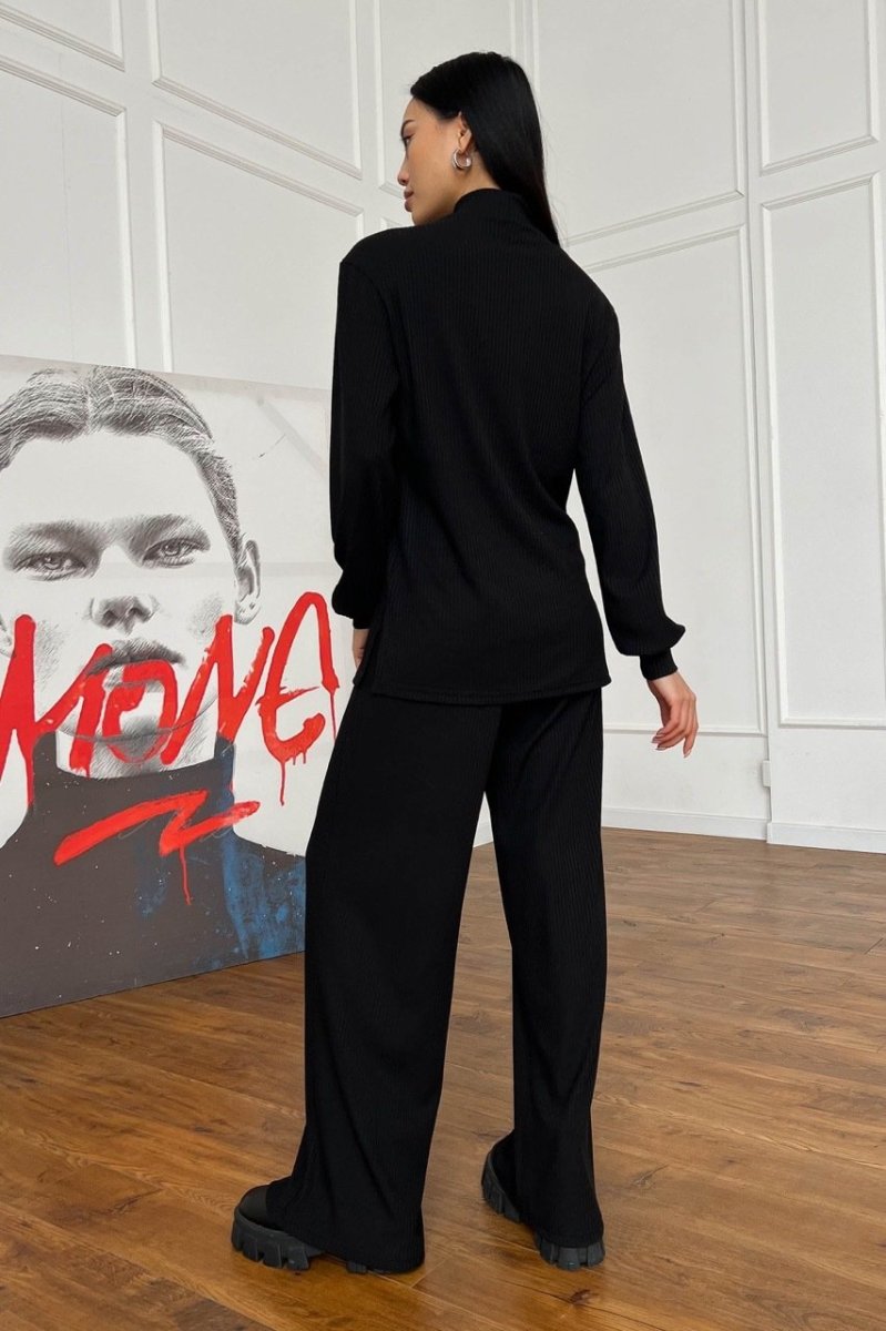 Модель крою oversize з тунікою та широкими брюками з високою посадкою на талії.