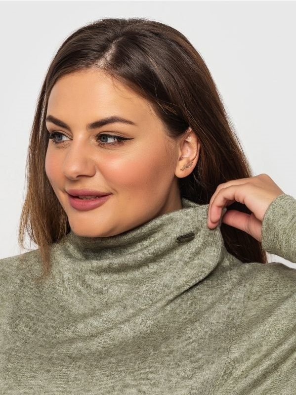 Світшот з коміром-стійкою, злегка прилеглим до горла. Подовжена поличка оформлена розрізом, який можна використовувати в якості зав'язок. На комірці пришивний металевий декор з найменуванням бренду. Спущена лінія плеча.