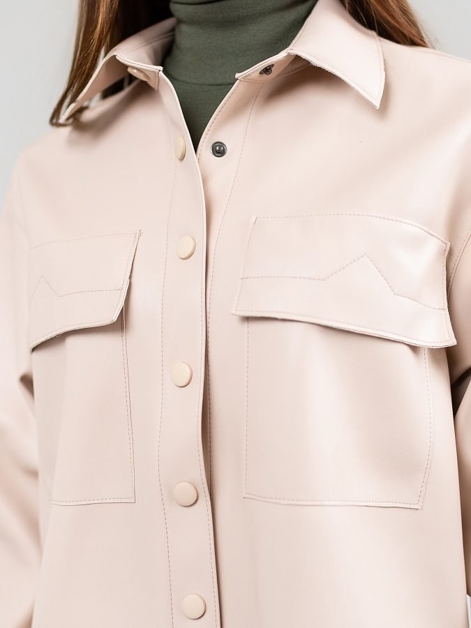 Сорочка вільного "oversize" крою зі спущеною проймою. Застібається на кнопки, пофарбовані в тон вироби. На грудях накладні кишені з клапанами, доповнені декоративною відстрочкою. По спинці кокетка. У бічних швах внизу закруглені вирізи, спинка подовжена. Манжети рукавів застібаються на кнопки. Сорочка досить щільна може виступати в якості верхнього шару одягу. Модель укомплектована знімним поясом з основного матеріалу.
