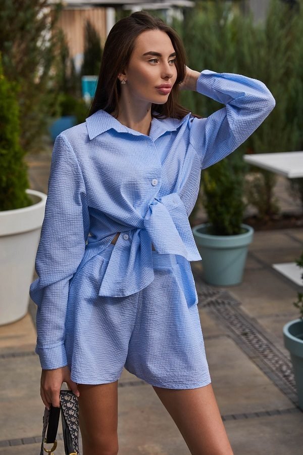 Стильний літній костюм-двійка з шортами стане відмінним варинатом для спекотного літа. Представлений у вигляді блузи Oversize і шортиків на середній посадці. Оригінальна моделька виконана з легкого попліну стане улюбленою у Вашому гардеробі. Високі вирізи на шортиках додадуть образу кокетливості і сексуальності.