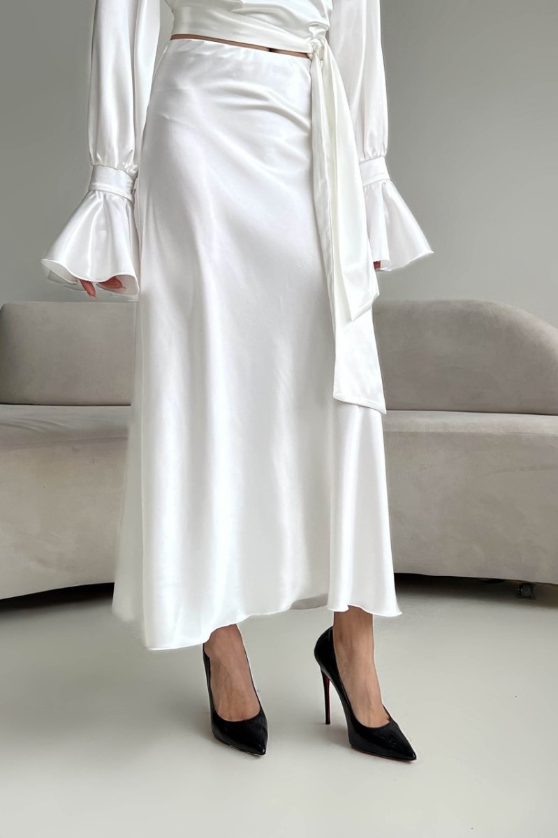 Неперевершено ніжна та жіночна модель костюму зі спідницею з королівського атласу.