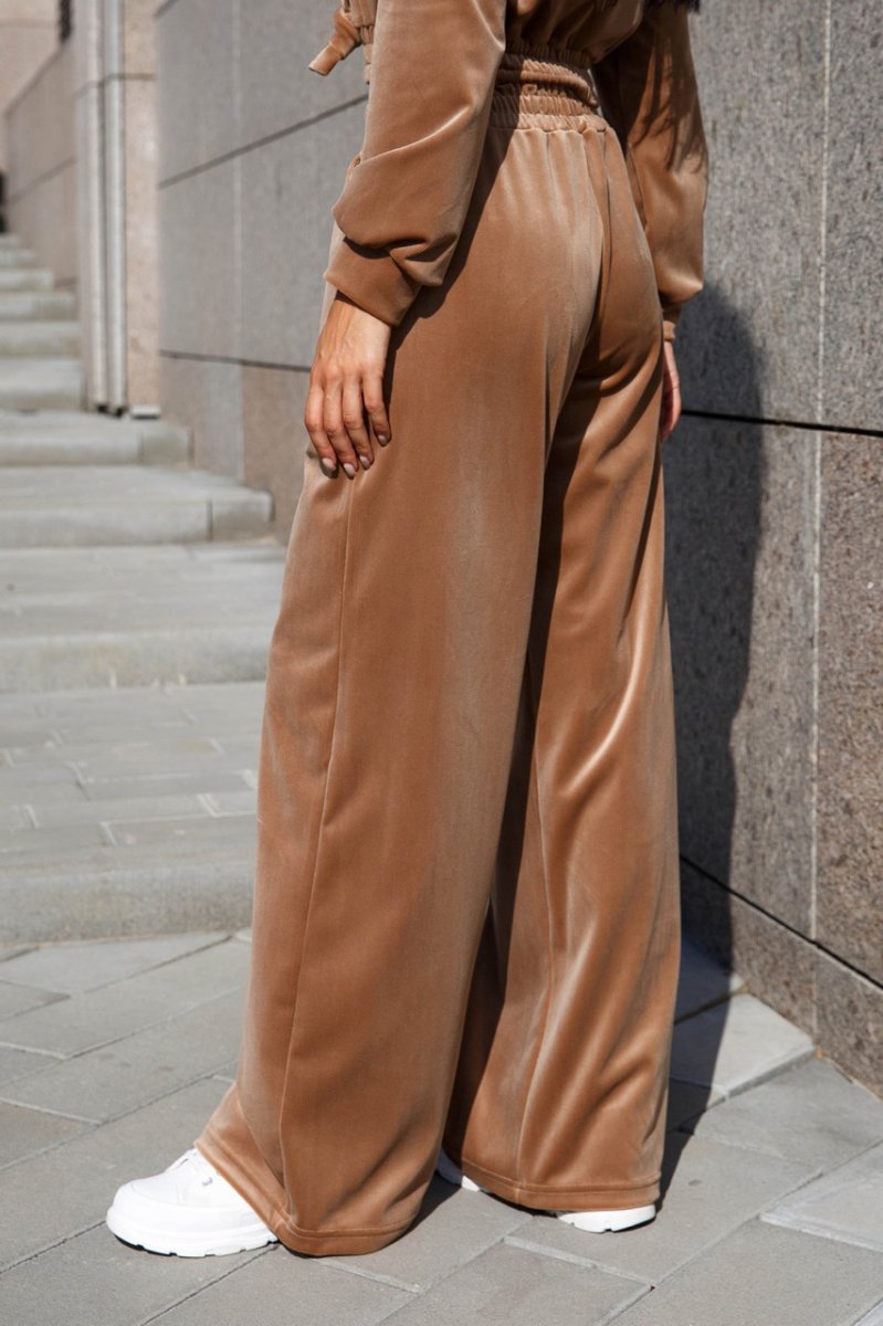 Модний жіночий костюм з велюру у стилі спорт-шик. Наш новий прогулянковий костюм – двійка – чудовий вибір на теплу осінь! Головним критерієм для повсякденного одягу залишається комфорт. У нашій новій моделі Ви почуватиметеся зручно та комфортно, адже це так важливо у сучасному ритмі життя. Модель костюма поєднує у собі світшот з довгими рукавами з капюшоном та штани – кюлоти вільного крою.