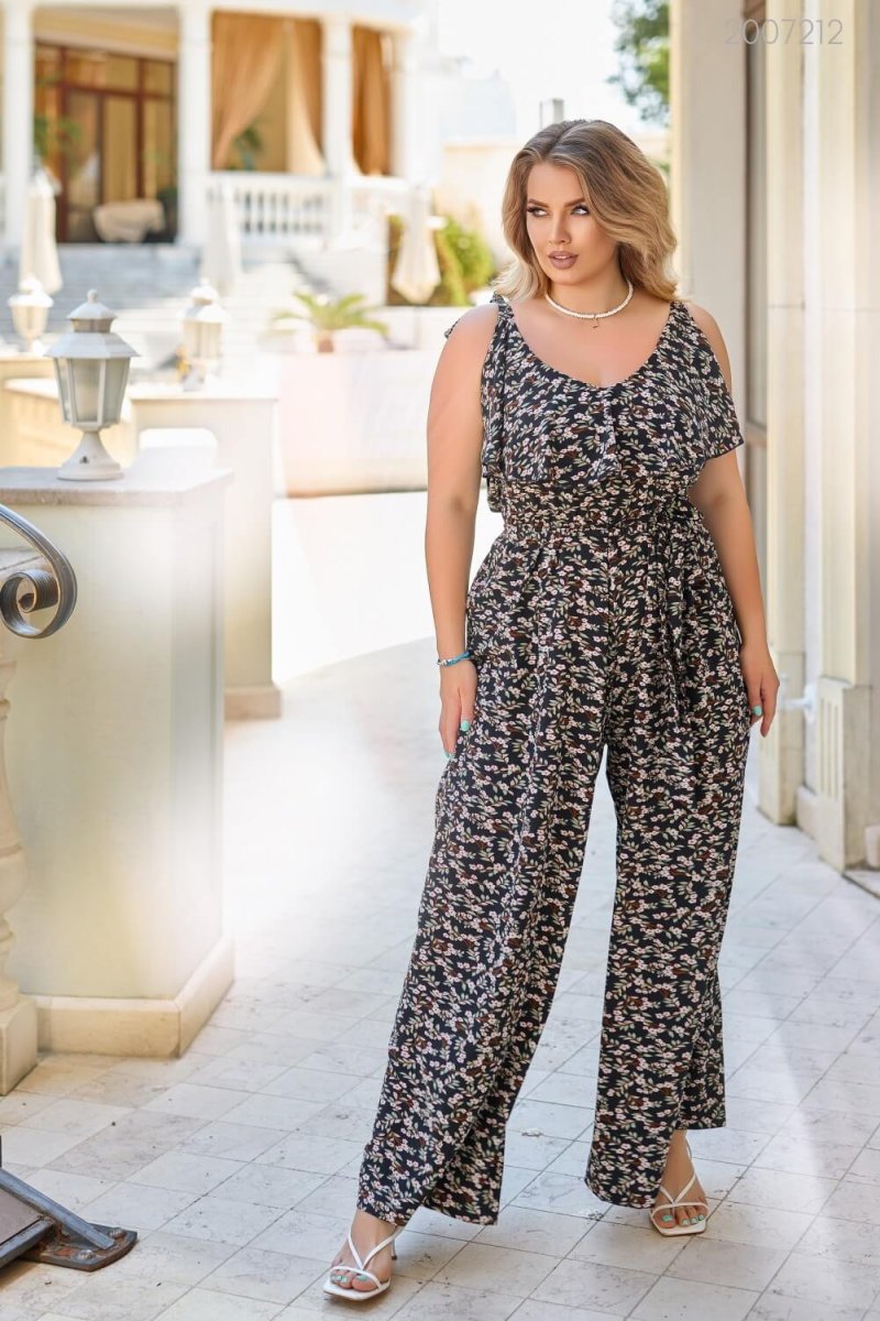 Деталі: А-силует, ліф на бретелях, що регулюються, талію фіксує гумка, розкішні штани-палаццо вільного крою з бічними кишенями. Пояс у комплекті.