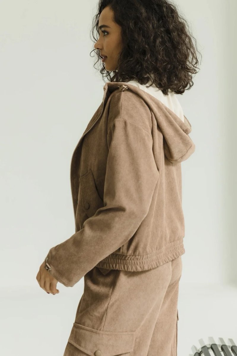 Конструктивні елементи: пояс на резинці, рукава на затяжках, капюшон