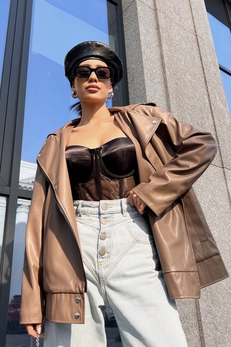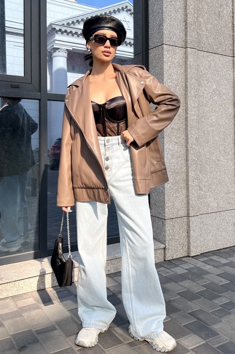 Косуха з легкістю стане універсальним елементом гардеробу: вдень її можна поєднувати з повсякденними джинсами і пуловером,