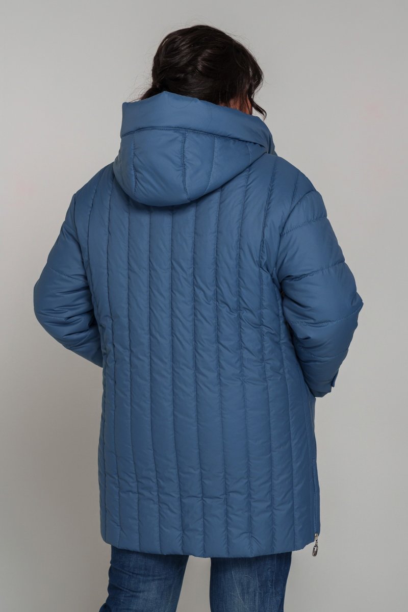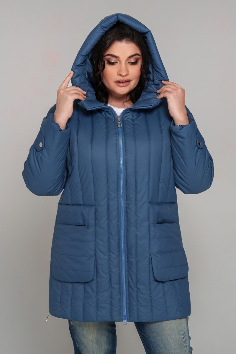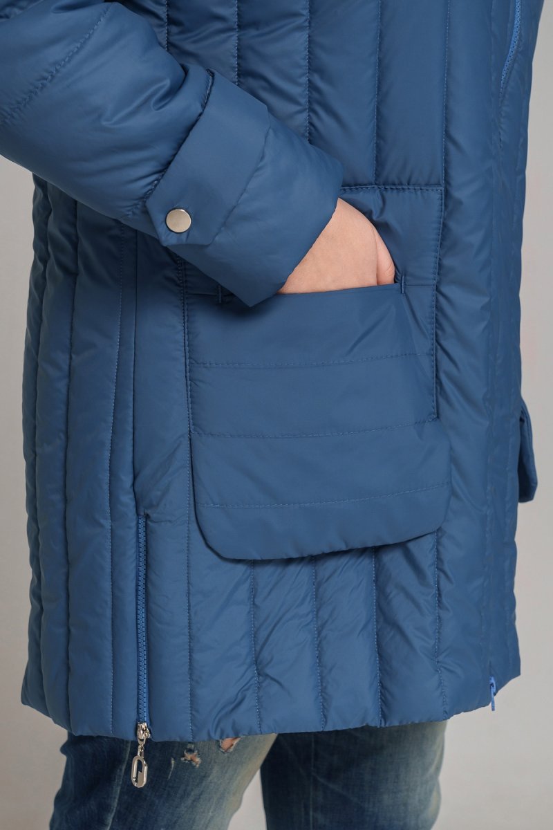 Куртка напівприталеного силуету, наповнювач тинсулейт (120 г/м2). Рукав втачний, одношовний, декорований патом на кнопку, спущене плече. Капюшон втачний, висота регулюється шнурком із затискачами. У бічних швах розташована функціональна блискавка. Кишені накладні, підвісні, декоровані закріпкою. Застібка на двосторонню блискавку.