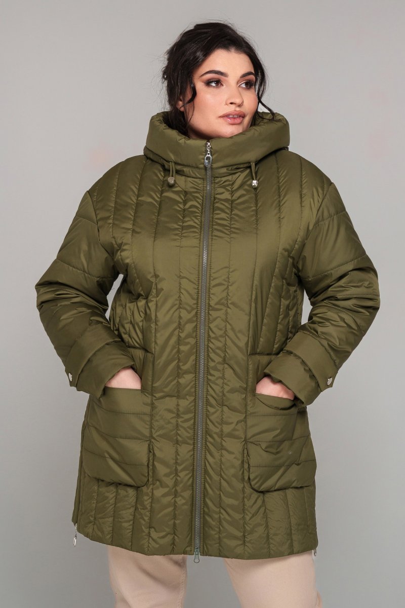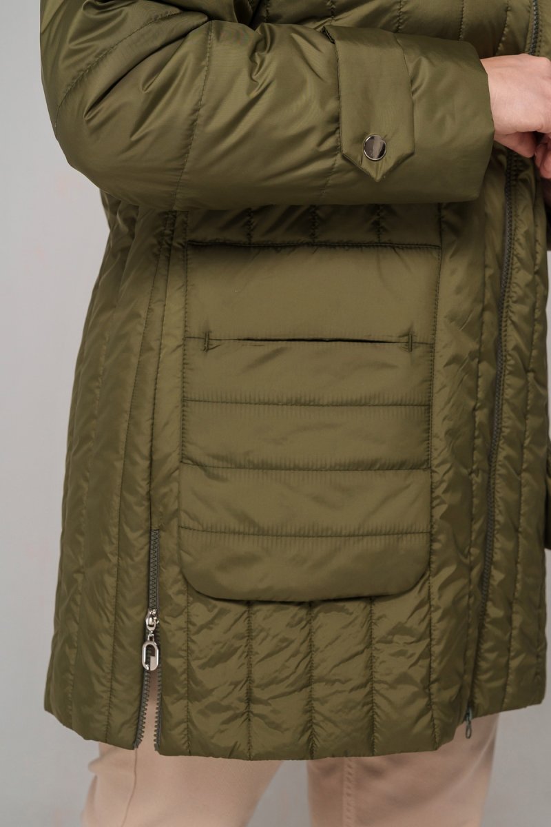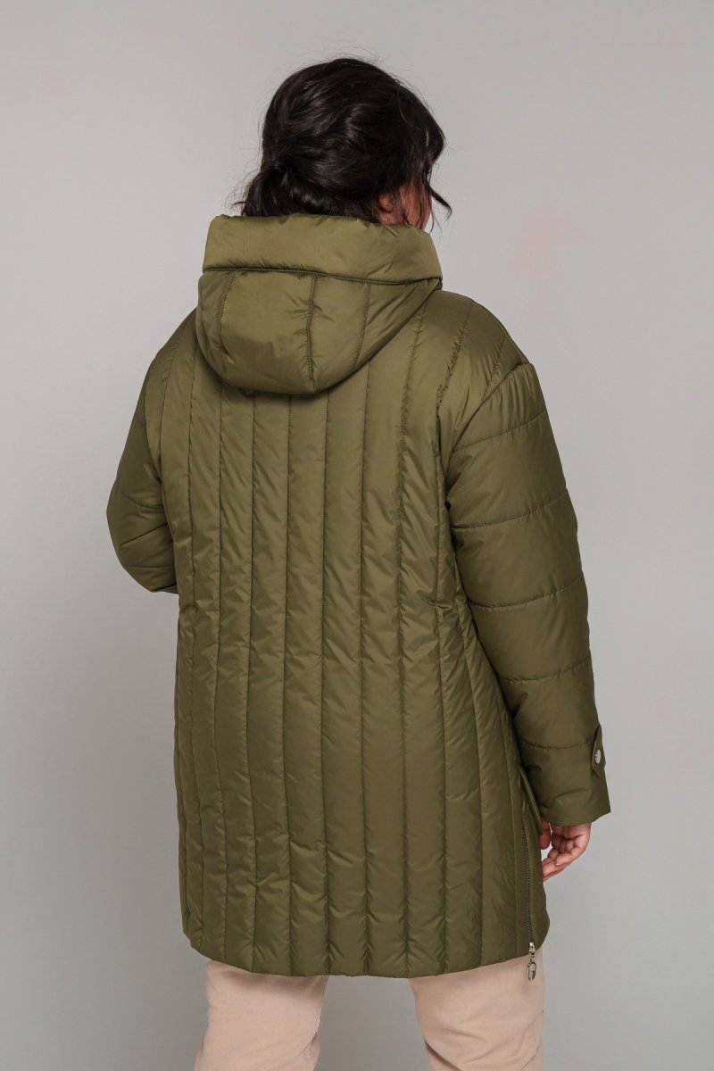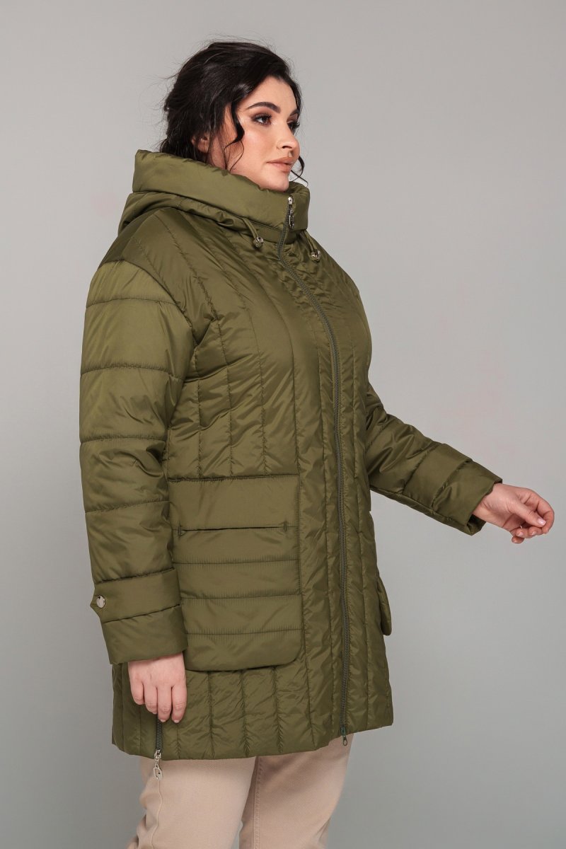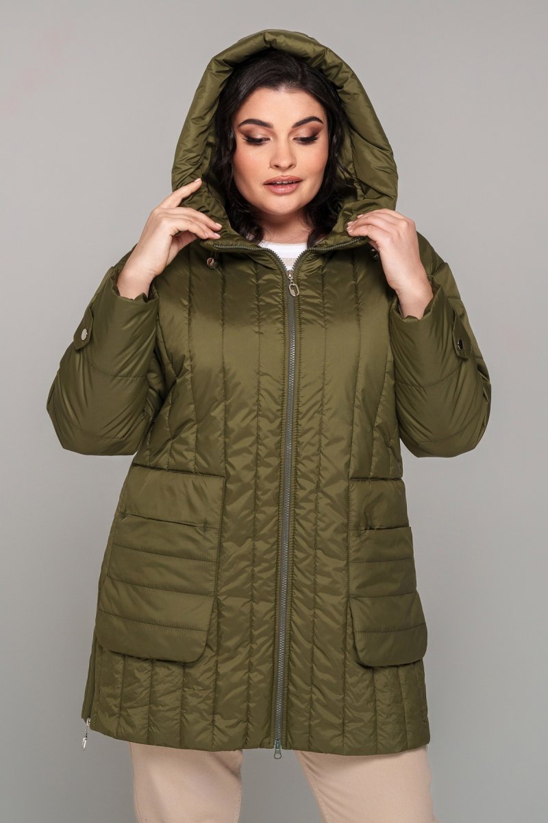 Куртка напівприталеного силуету, наповнювач тинсулейт (120 г/м2). Рукав втачний, одношовний, декорований патом на кнопку, спущене плече. Капюшон втачний, висота регулюється шнурком із затискачами. У бічних швах розташована функціональна блискавка. Кишені накладні, підвісні, декоровані закріпкою. Застібка на двосторонню блискавку.