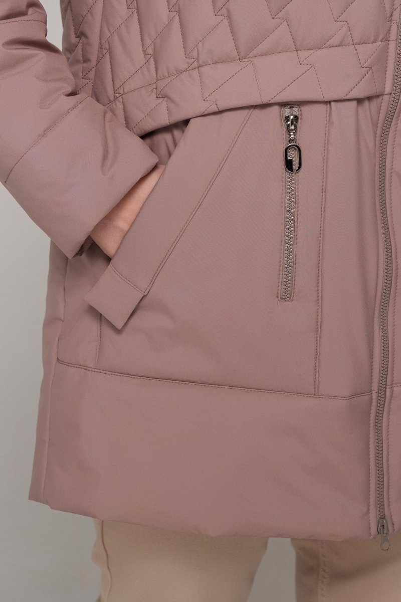 Куртка прямого силуету, виконана з матової, водовідштовхувальної плащової тканини на мембрані. Наповнювач тинсулейт (120 г/м2). Рукав – реглан. Кишені накладні, права декорована блискавкою. Капюшон втачний, висота регулюється шнурком із затискачами. Застібка на двосторонню блискавку.