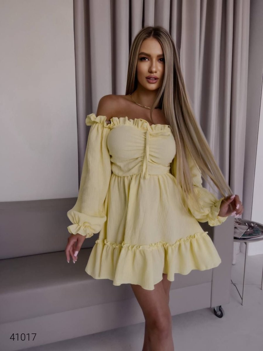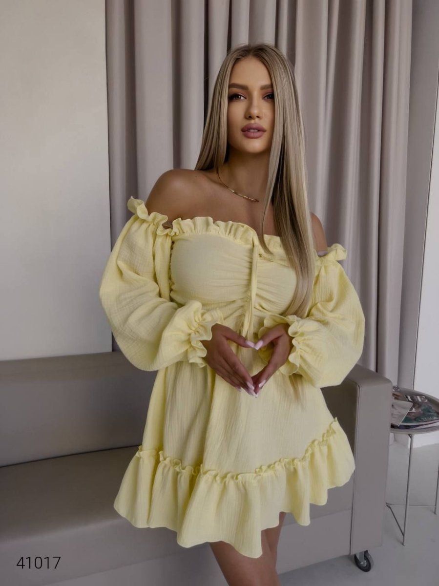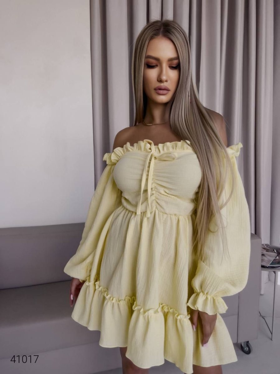 Літня сукня ліхтарик з довгими рукавами. Тканина: натуральний муслін, бавовна 100%.