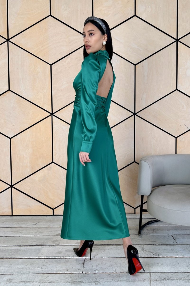 Елегантна сукня з відкритою спиною, комірцем стійкою і довгим рукавом виглядає шикарно. Ця модель ідеально підійде для важливих подій та урочистих заходів. Сукня яка надасть вам неповторний шарм та вишуканість. Насолоджуйтесь увагою та захопленням оточуючих у цьому чудовому наряді.