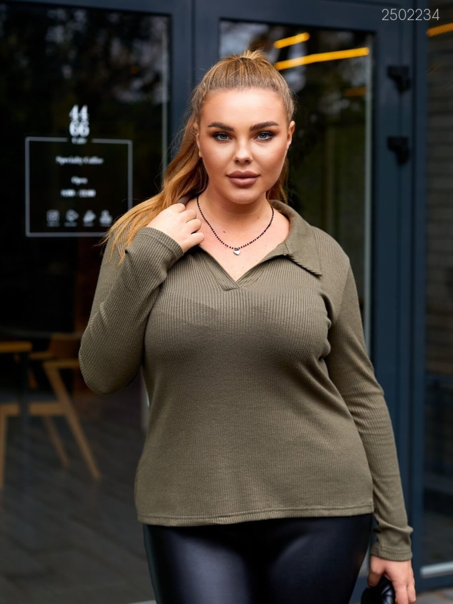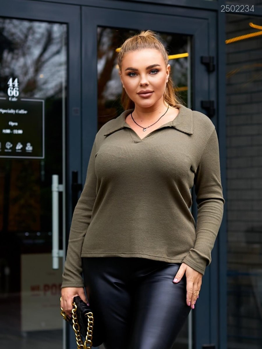 Подробиці: Светр з відкладним коміром та довгим рукавом.
