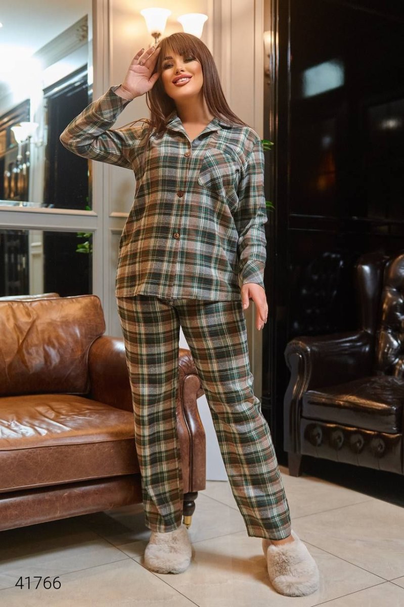 Жіноча піжама в клітку. Тканина: турецький трикотаж.