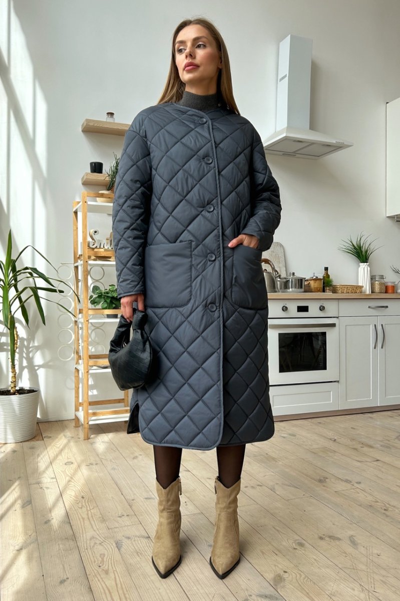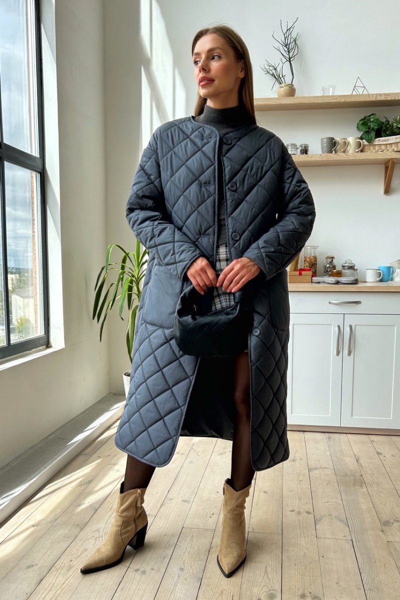 Це стильне стьобане пальто з плащової тканини та мікро пуху – ідеальне рішення для холодних днів.. Воно забезпечує відмінну теплоізоляцію та захист від вітру.. Крім того, це пальто виглядає дуже модно та елегантно.